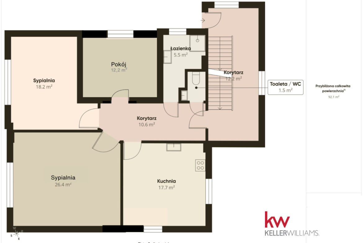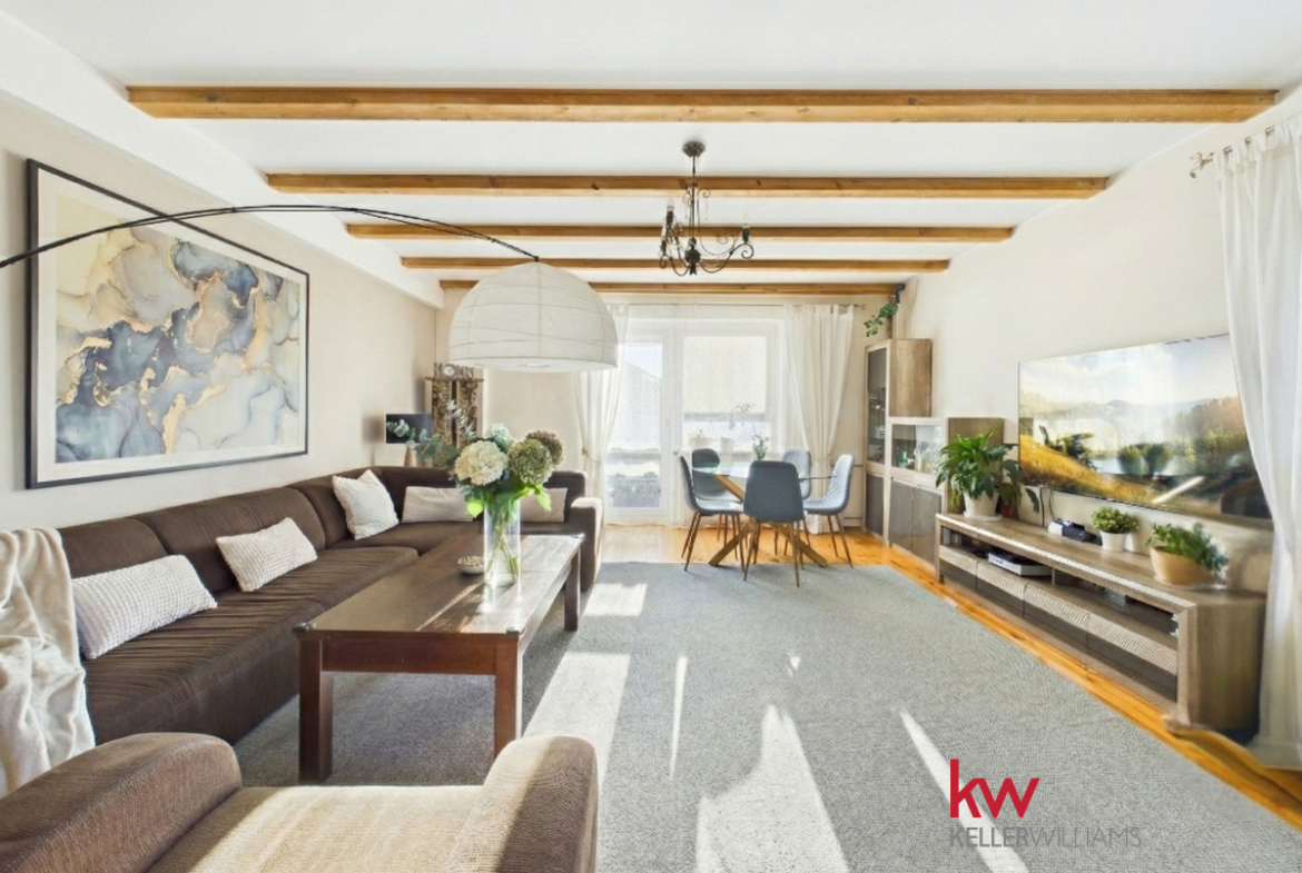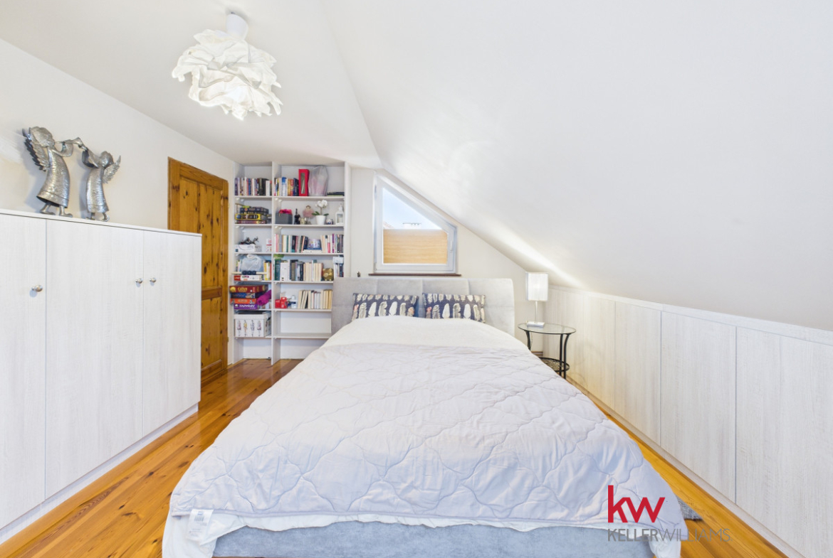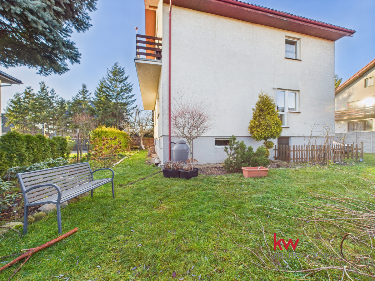 Wnętrza są jasne i funkcjonalne, a duże pomieszczenia zapewniają komfort codziennego życia. Przestronny salon stanowi centralne miejsce domu, idealne do wspólnego spędzania czasu. Kuchnia jest wygodna i dobrze doświetlona, a liczne pokoje pozwalają na aranżację sypialni, gabinetu lub przestrzeni do pracy zdalnej.