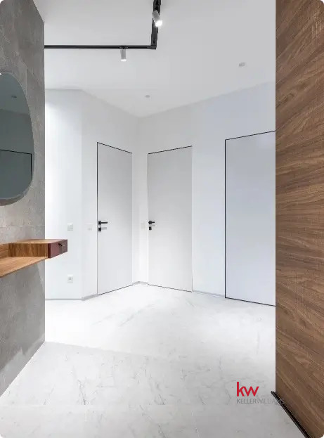 Układ: Salon z aneksem kuchennym, 2 sypialnie, 2 łazienki, garderoba.