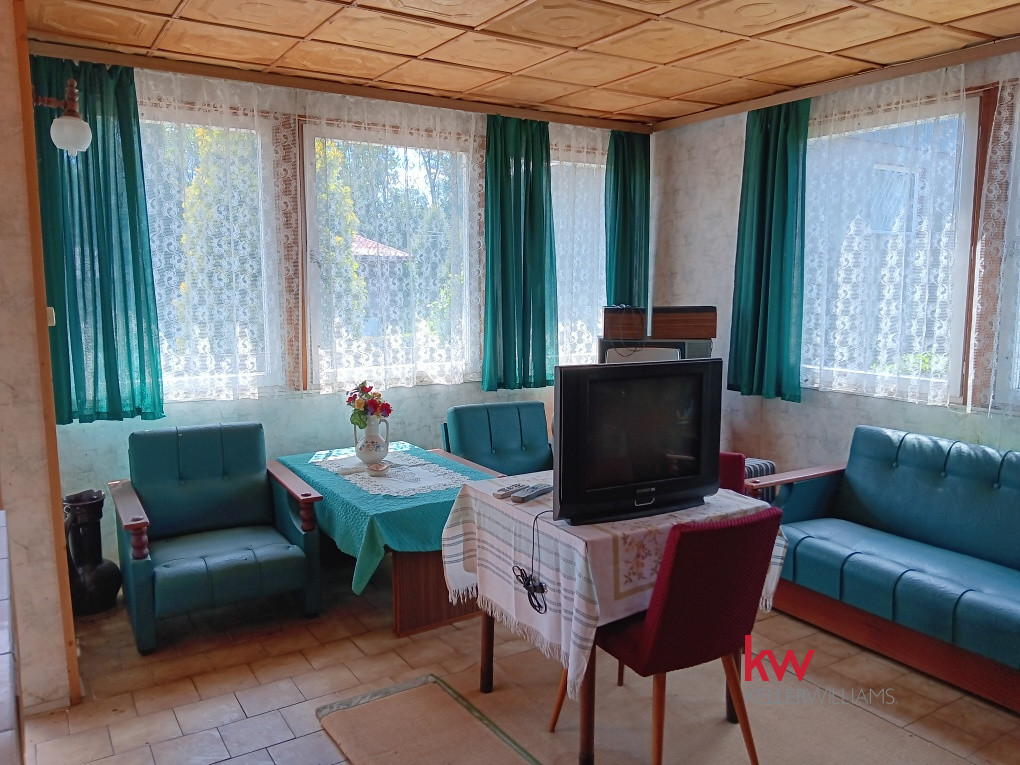 Wysoki parter: olbrzymi salon z kominkiem, sypialnia , kuchnia, łazienka ( 80 m2) . Przyziemie ( 80 m2 ) z garażem i możliwością wydzielenia pokoi ( są okna). Działka – 300m2. Dom wymaga remontu, aczkolwiek w tym sezonie można tam spokojnie zamieszkać i i cieszyć się świeżym powietrzem i bliskością zalewu.