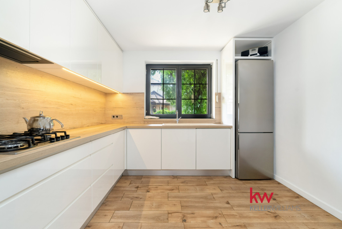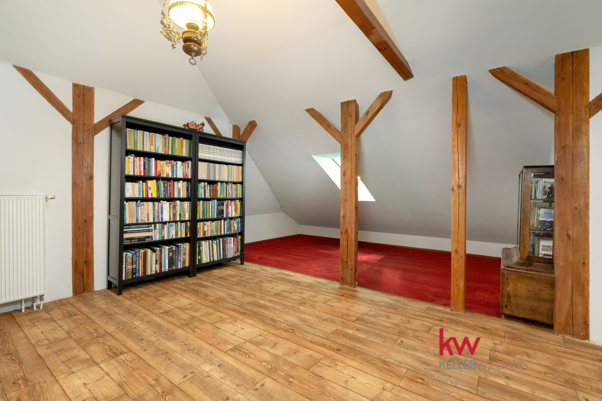 Dom mieszkalny jest klimatyczny i funkcjonalny, a jednocześnie stanowi doskonałą bazę do adaptacji według własnych potrzeb. Może zostać rozbudowany i przekształcony w nowoczesną rezydencję albo pozostać przytulnym domem rodzinnym.