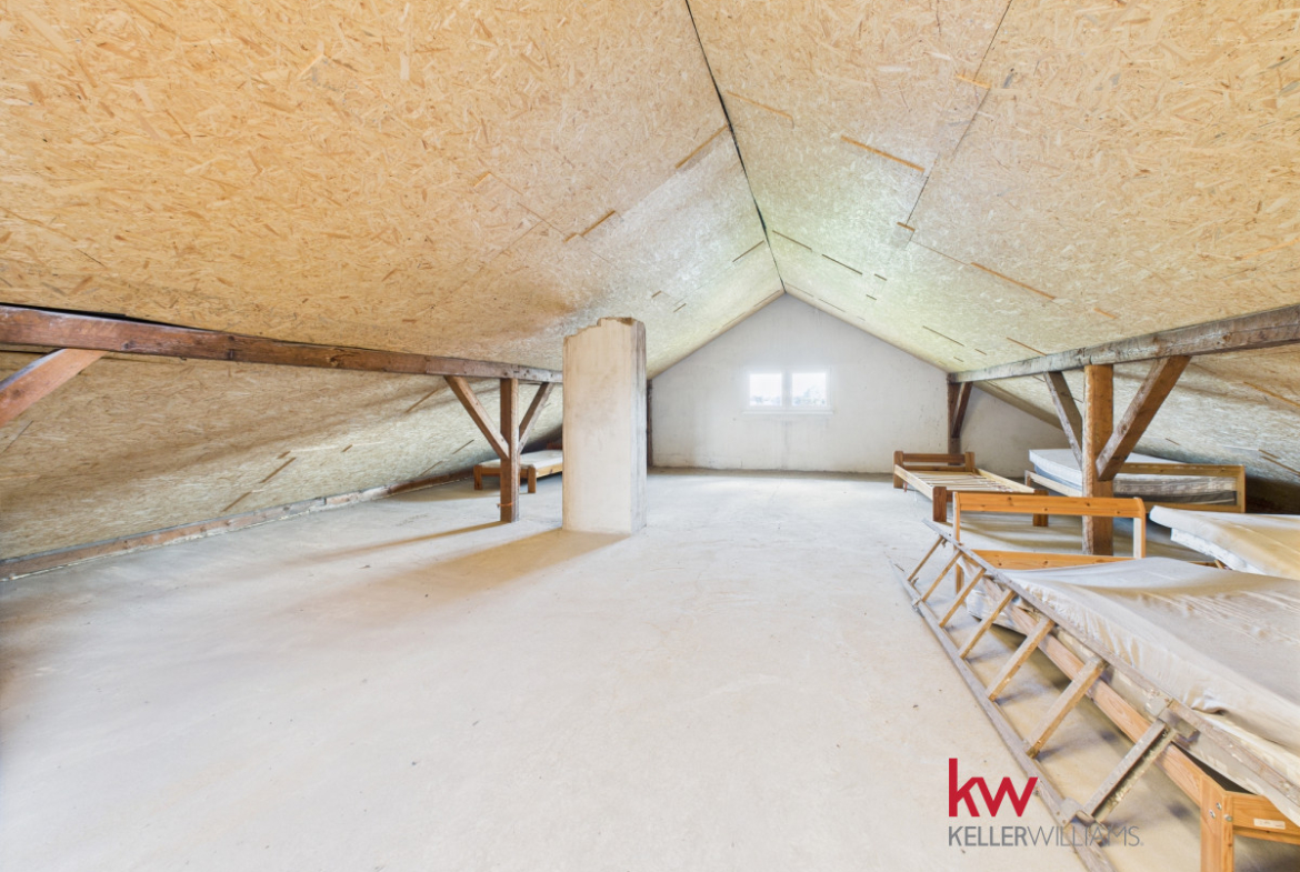• Przestronny strych (~100m²) z możliwością adaptacji na dodatkową przestrzeń magazynową.