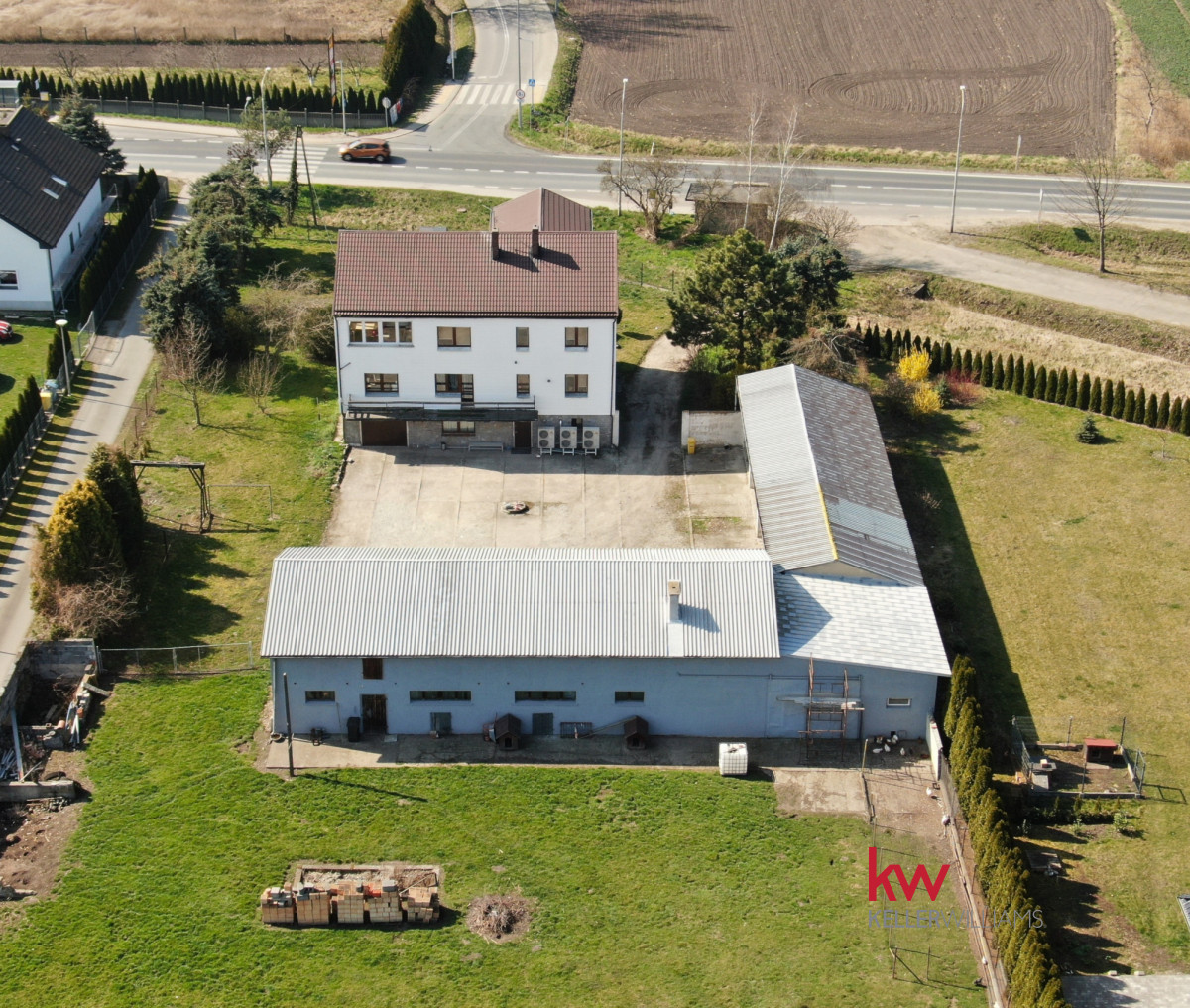 Do wynajęcia wolnostojąca nieruchomość w pełni przystosowana do prowadzenia działalności gospodarczej z jednoczesnym zapleczem noclegowym dla kadry pracowniczej. Obiekt zlokalizowany w strategicznym punkcie przy drodze krajowej DK8 w Cieszycach oferuje łączną powierzchnię użytkową 349 m² (477,25 m² powierzchni całkowitej) oraz ogrodzoną działkę z bramą wjazdową o powierzchni 2300 m².