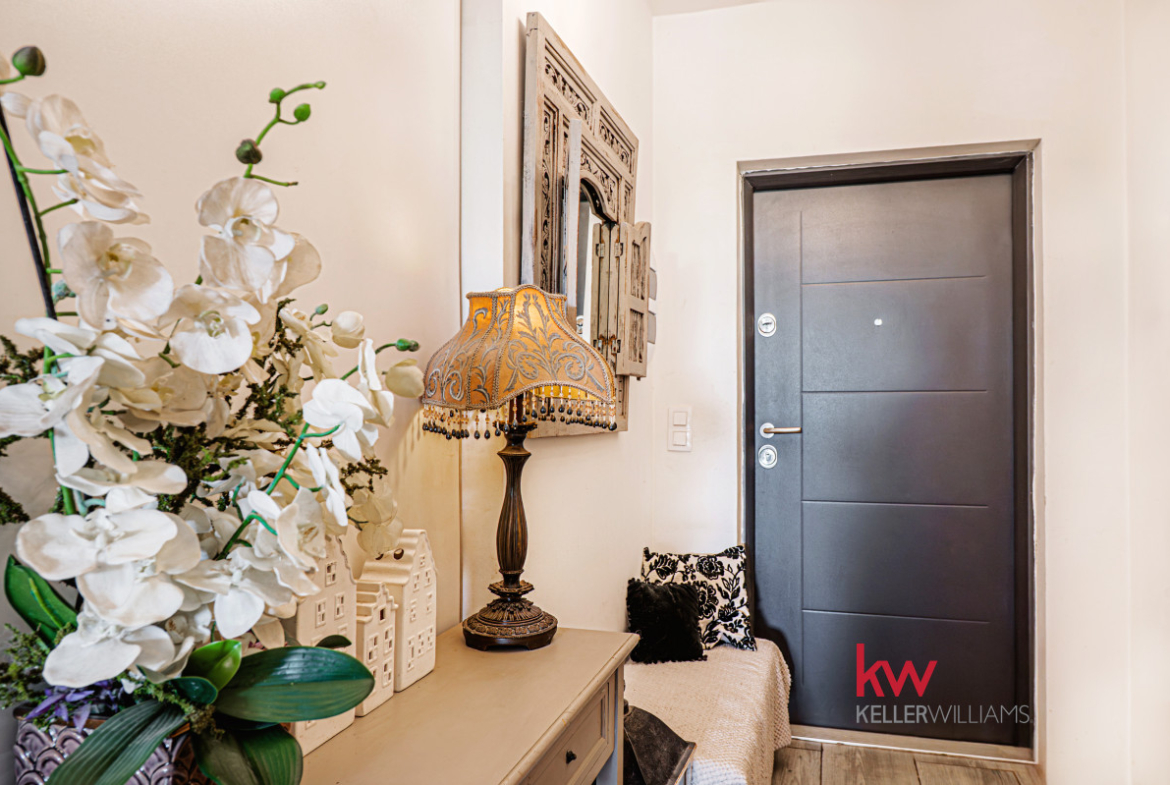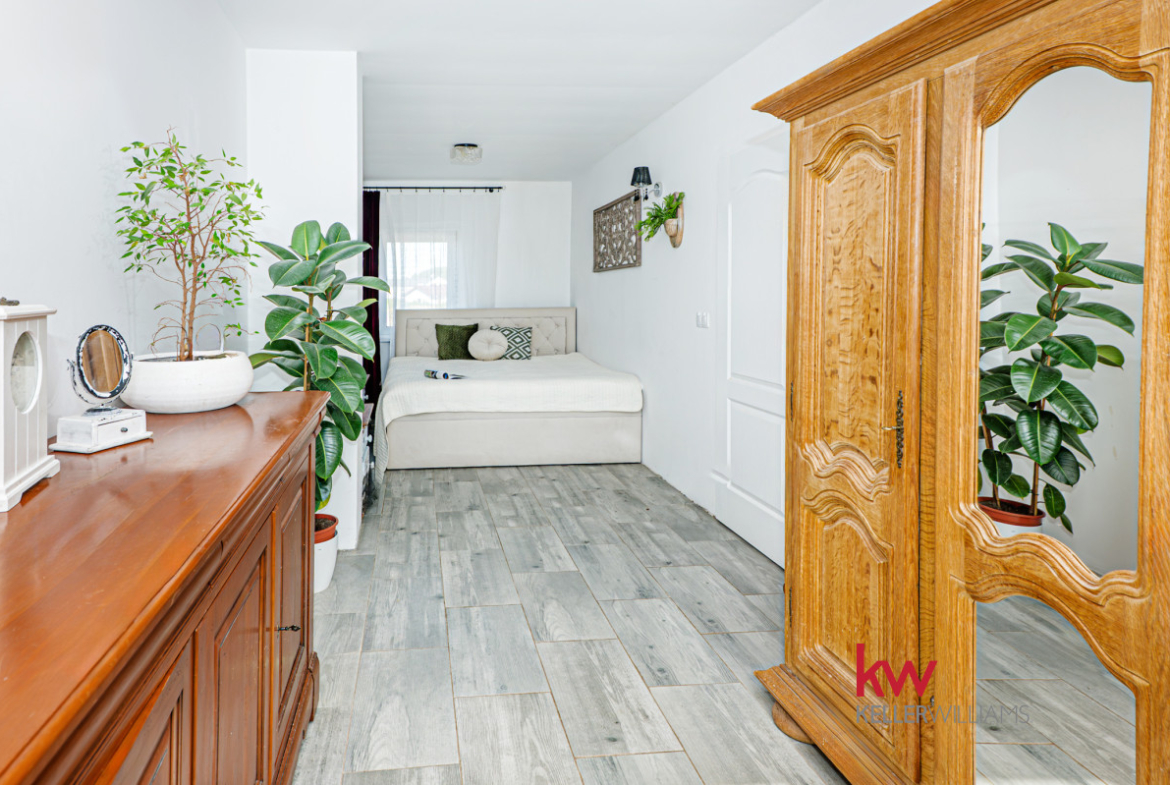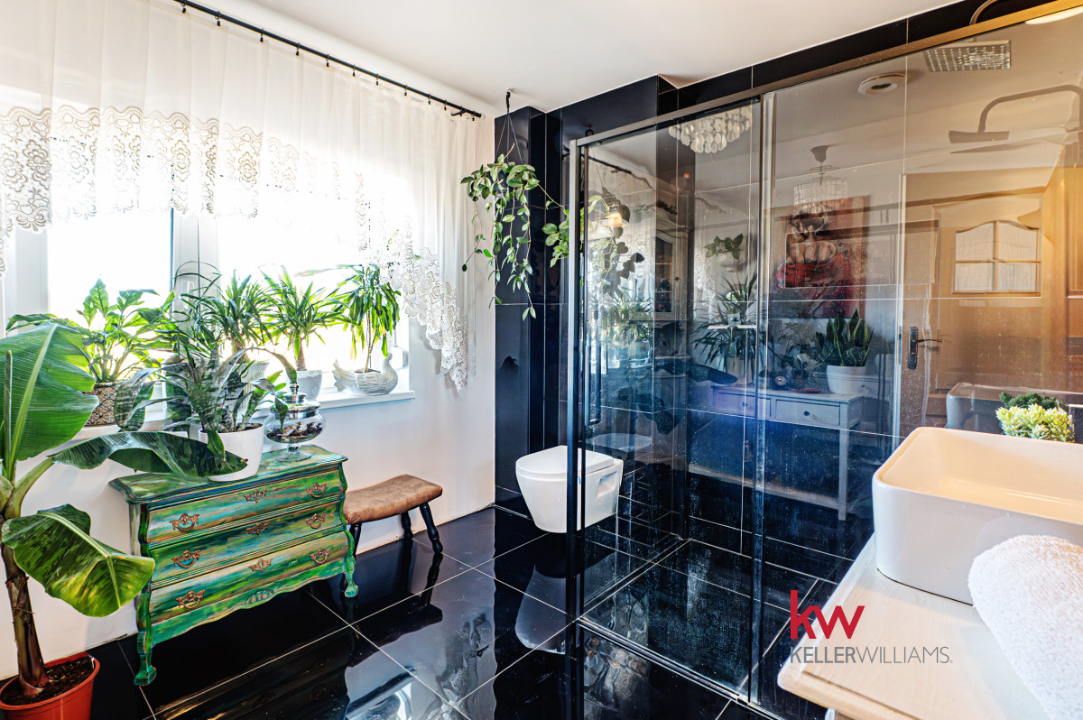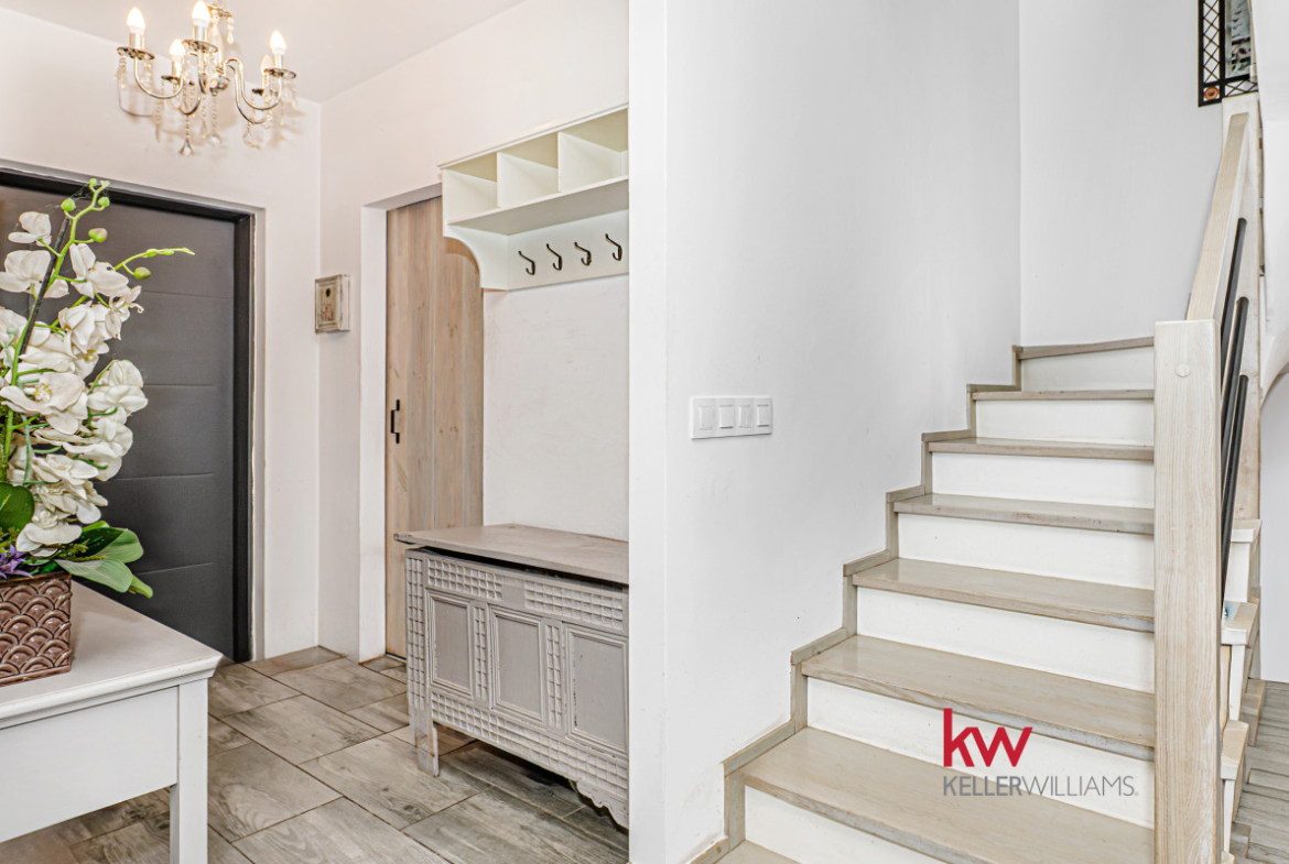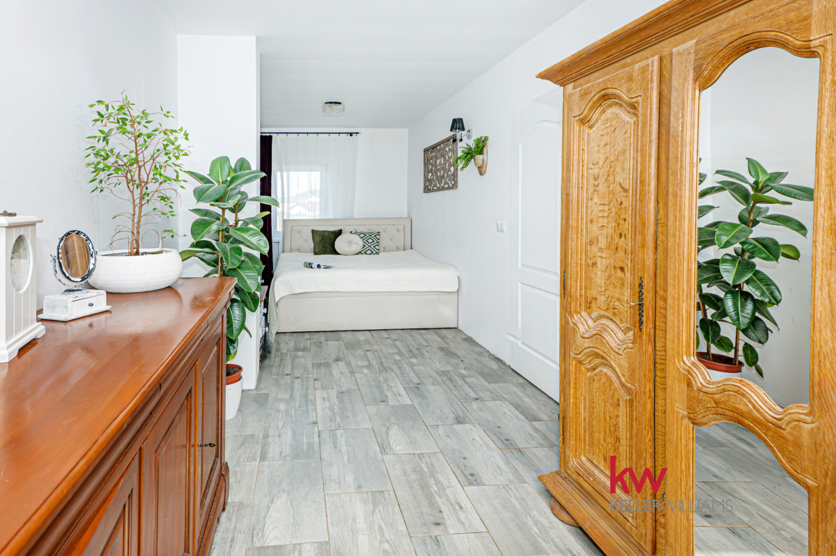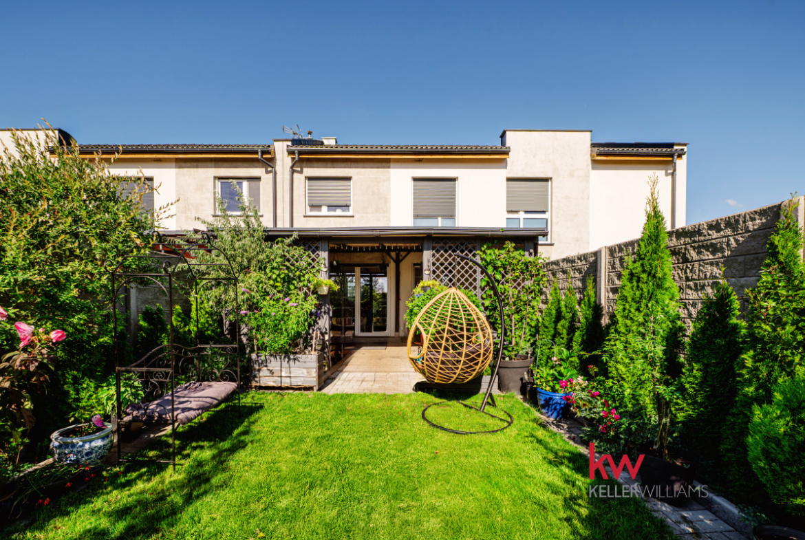 Dom wyposażony jest w nowoczesne udogodnienia, takie jak pompa ciepła i ogrzewanie podłogowe w całym domu, zapewniające optymalny komfort. Pięknie wykonana drewniana weranda (24 m²) stanowi idealne miejsce wypoczynku, z widokiem na rozległy ogród o powierzchni około 150 m², wyposażony w system nawadniania. Dodatkowo, do dyspozycji jest poręczny schowek na narzędzia, idealny do prac ogrodniczych. Szybki internet światłowodowy zapewnia stały dostęp do sieci, a rolety antywłamaniowe i moskitiery we wszystkich oknach zapewniają dodatkowe bezpieczeństwo. Do nieruchomości przypisane są również dwa wyznaczone miejsca parkingowe, co zapewnia wygodę Tobie i Twoim gościom.