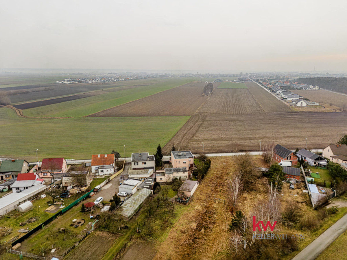 Działka zabudowana budynkiem gospodarczym 60 m², który w planach inwestycyjnych miał służyć jako biuro. Budynek magazynowy w planach miał być postawiony za biurem. Z przodu ogromny parking.