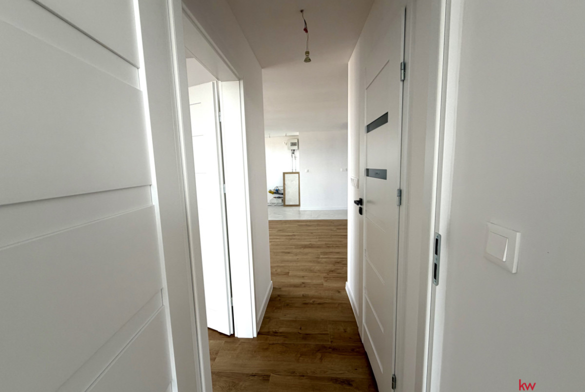Doświetlenie: Mieszkanie jest dwustronne (okna wychodzą na dwie strony świata), co gwarantuje rewelacyjne nasłonecznienie przez cały dzień.