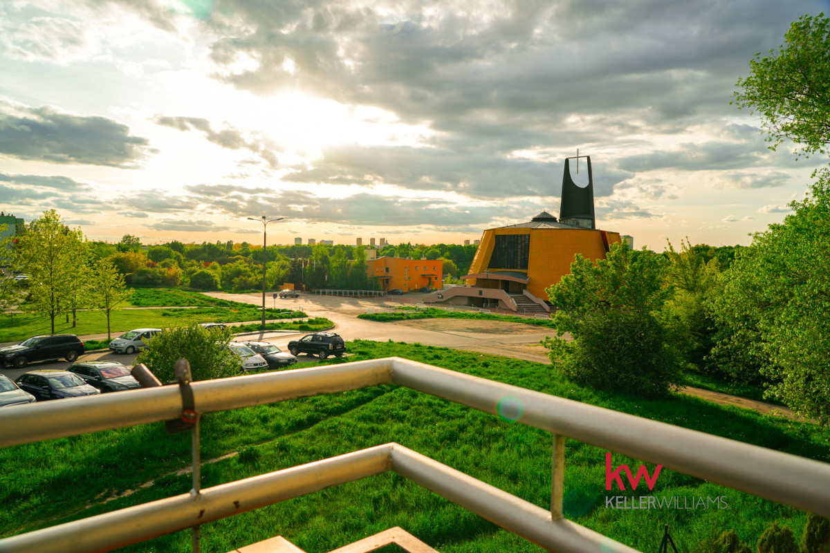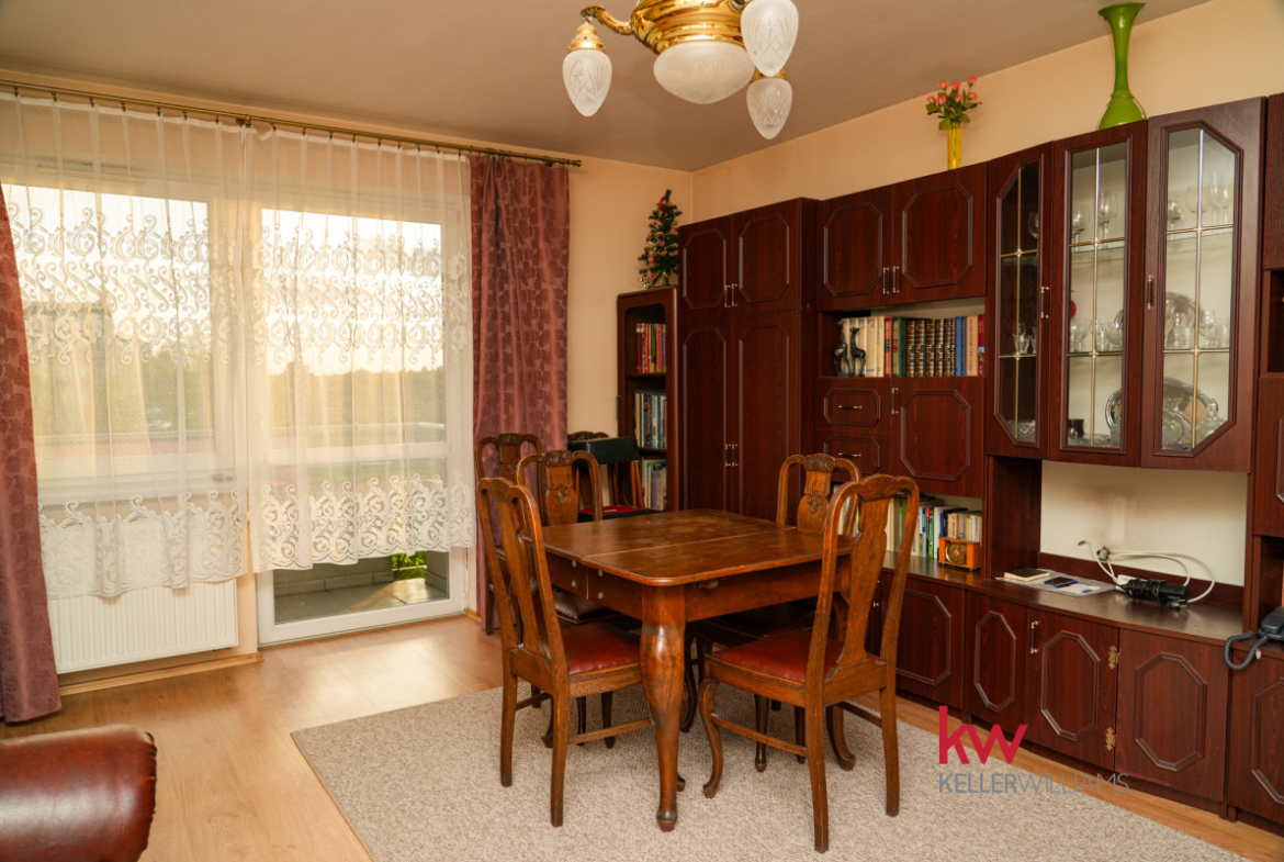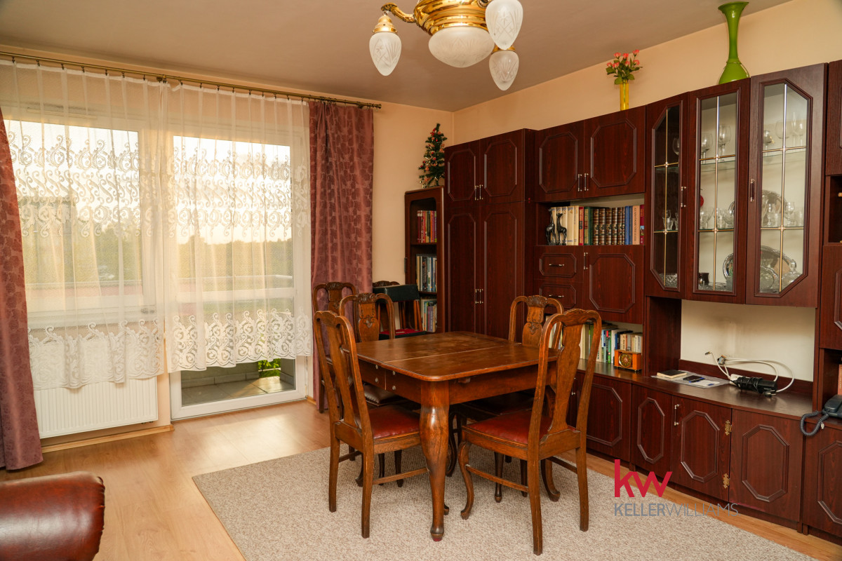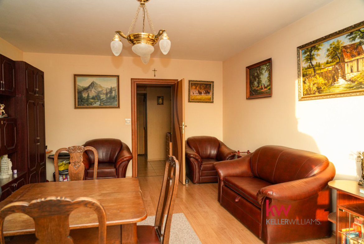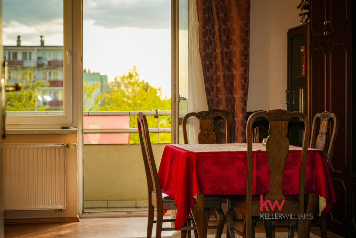 • Ustawny i umeblowany salon z wyjściem na balkon z widokiem na osiedle.