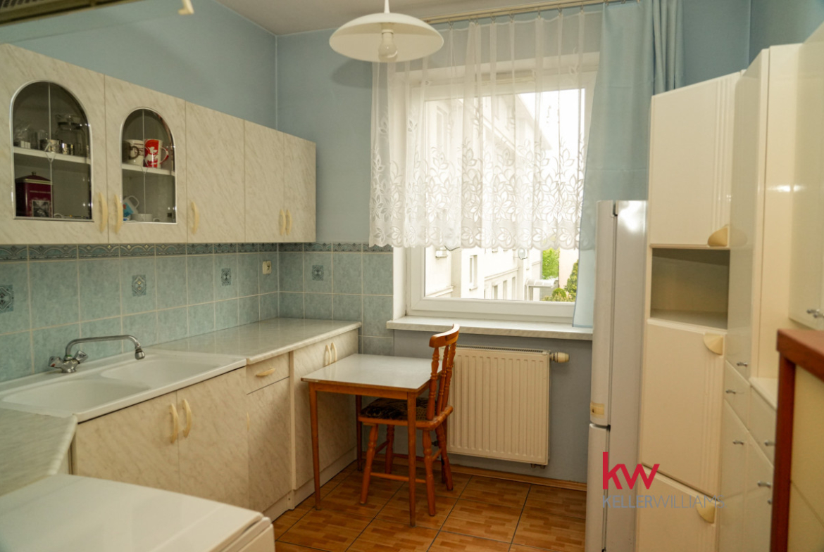 • Duża, jasna kuchnia z oknem – w pełni umeblowana i wyposażona w sprzęty AGD (lodówka, piekarnik),