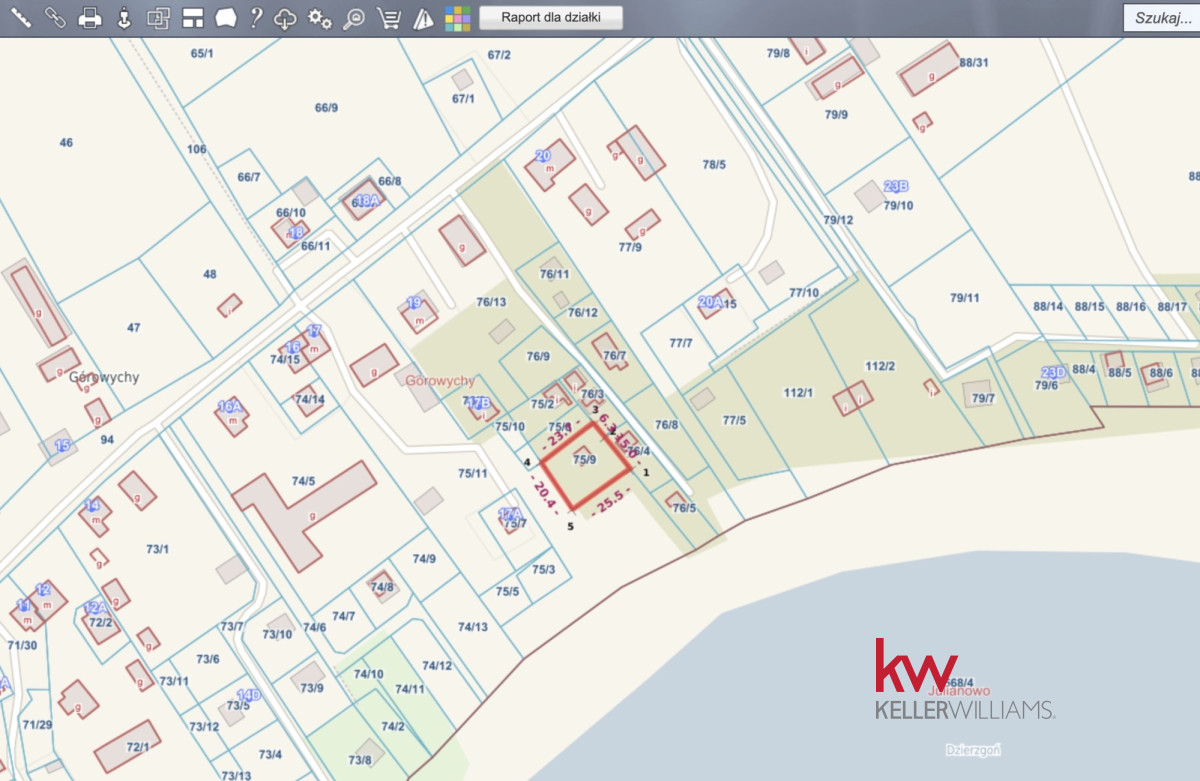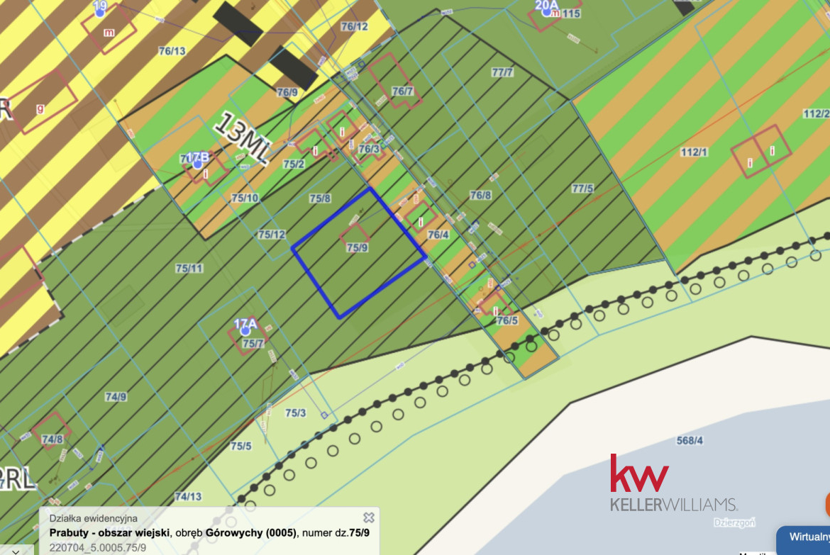 Numer działki: 75/9, obręb Górowychy. Treren oznaczony symbolem RL( teren rekreacyjny z zabudową letniskową)