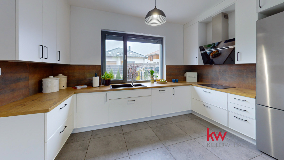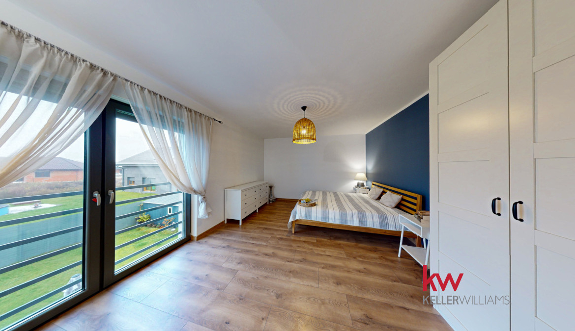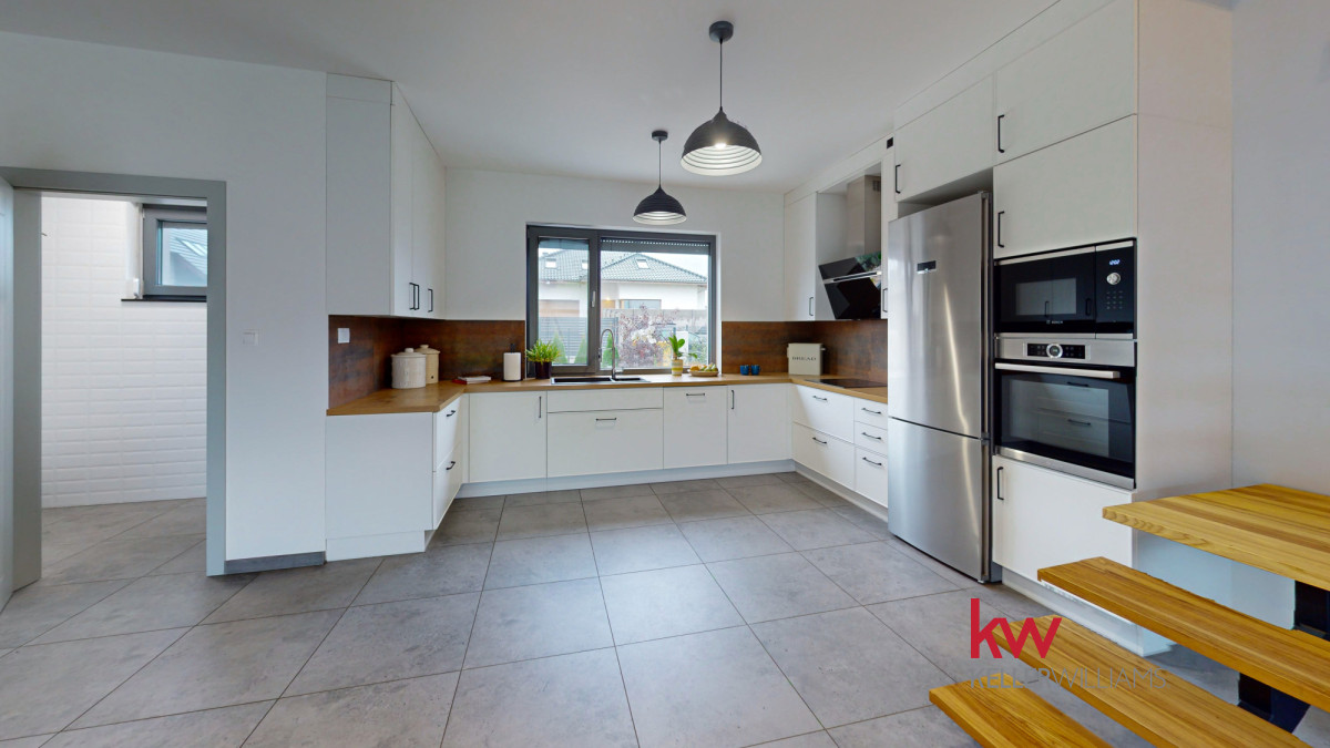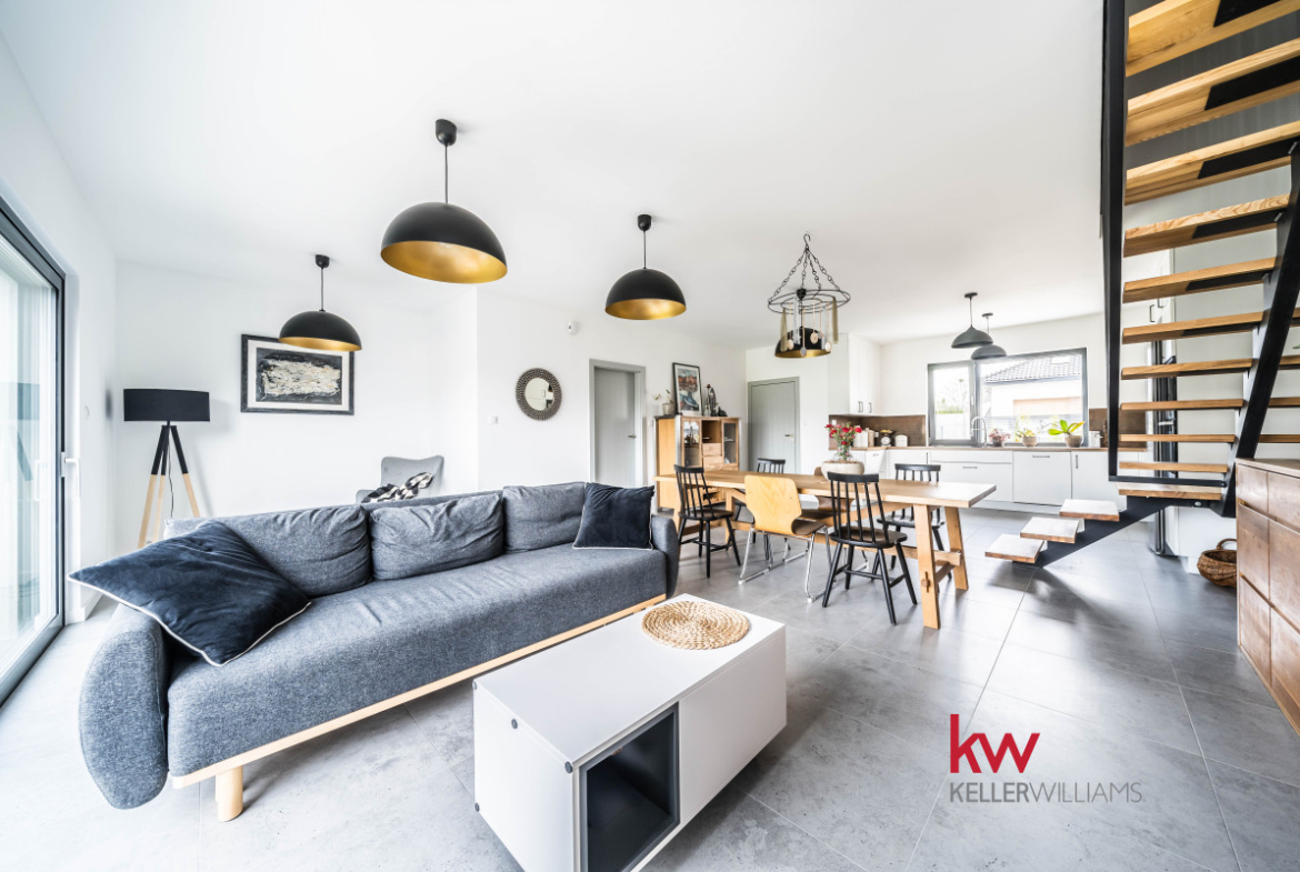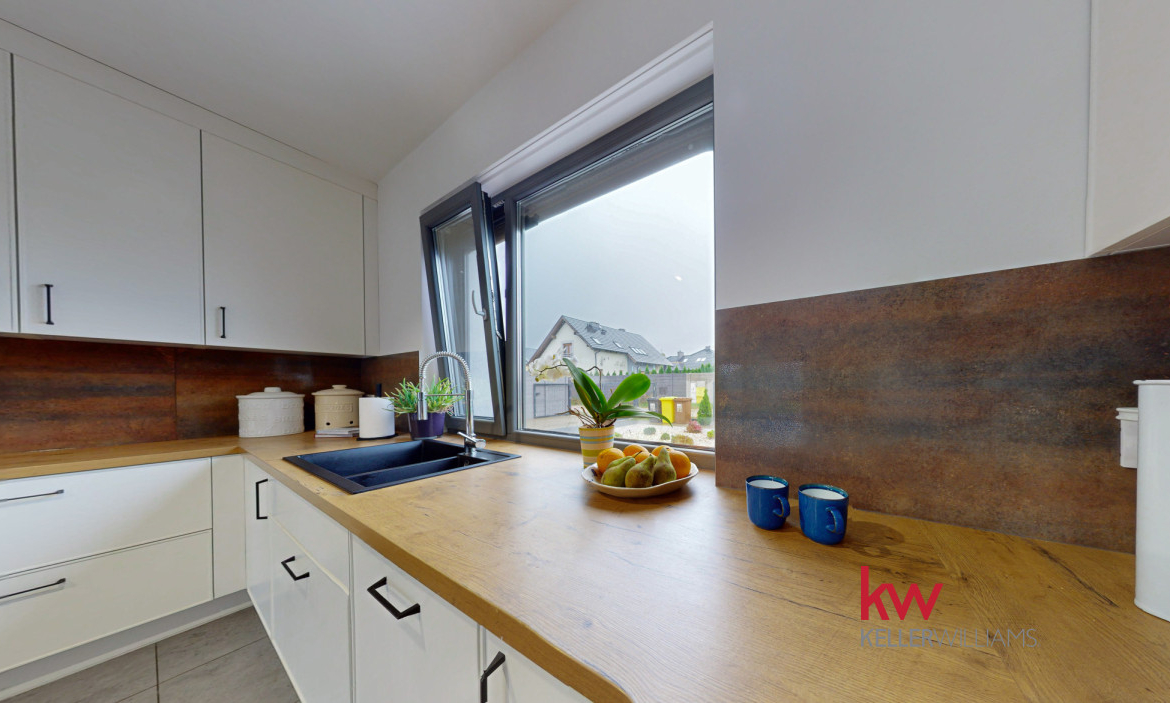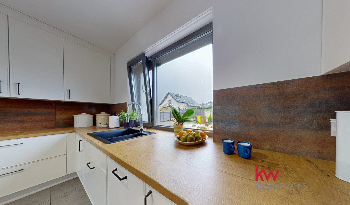 Dom jest gotowy na nowe wspomnienia i radosne chwile z rodziną. Duże, trzyszybowe okna wpuszczają do wnętrza naturalne światło, tworząc przytulną atmosferę, która sprzyja wspólnym chwilom.