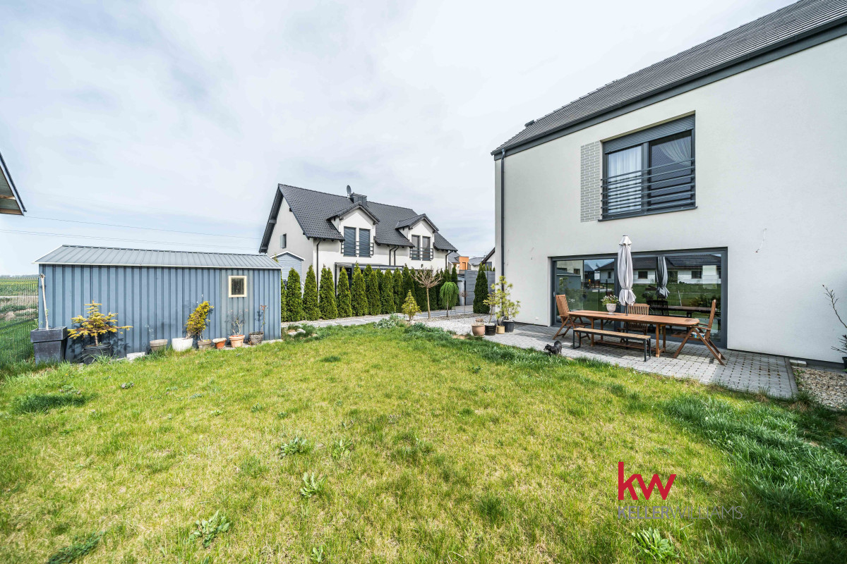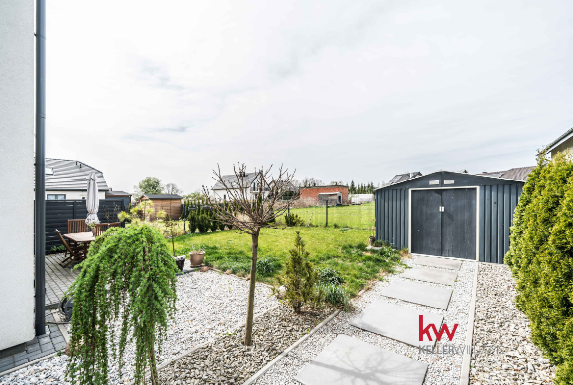 Dom wyposażony jest w nowoczesne przyłącza: wodne, elektryczne i gazowe, kanalizacja. Ogrzewanie podłogowe w całym domu, a także elektryczne rolety w oknach, zapewniają komfort w każdą porę roku. Dodatkowo, pięknie zagospodarowany ogród z licznymi nasadzeniami oraz szopa na narzędzia sprawią, że spędzanie czasu na świeżym powietrzu stanie się prawdziwą przyjemnością.