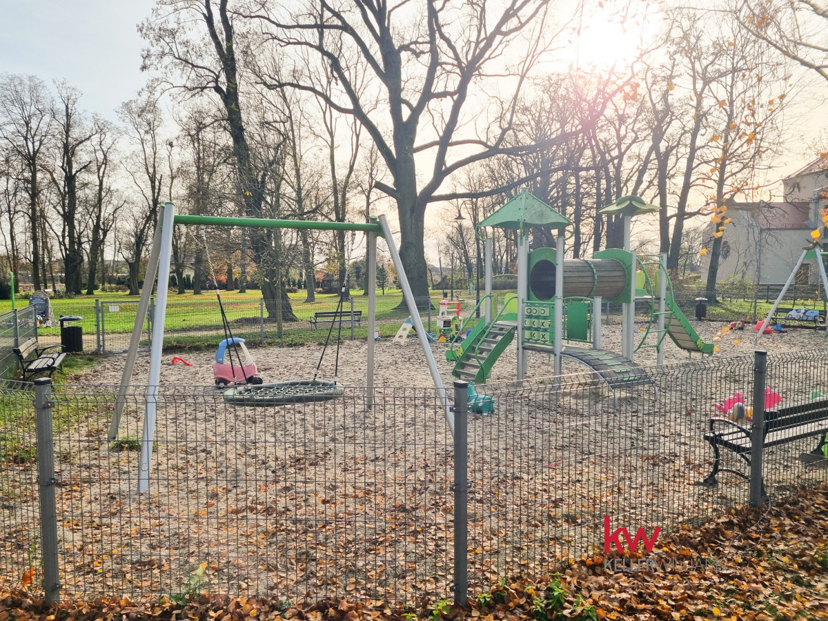 W okolicy znajdują się sklepy (Biedronka, Dino), park, plac zabaw, boisko typu Orlik oraz liczne tereny rekreacyjne i spacerowe. To idealne otoczenie dla rodzin z dziećmi i osób ceniących bliskość natury.