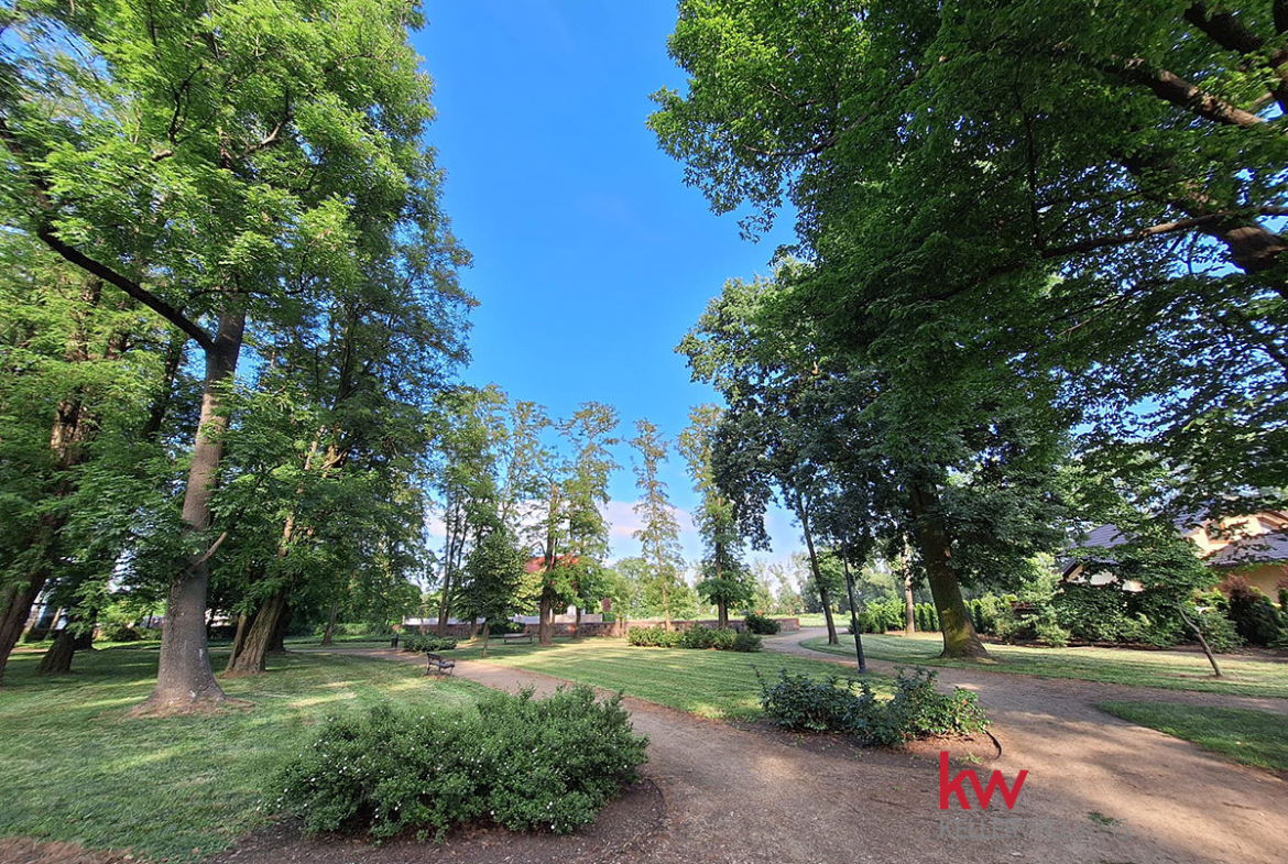 Okolica jest spokojna, otoczona zielenią i zabudową jednorodzinną.