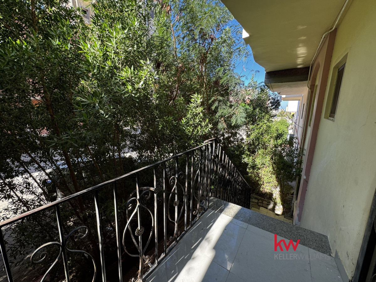 Duży balkon wychodzi na cichą ulicę i ma mały widok na morze.