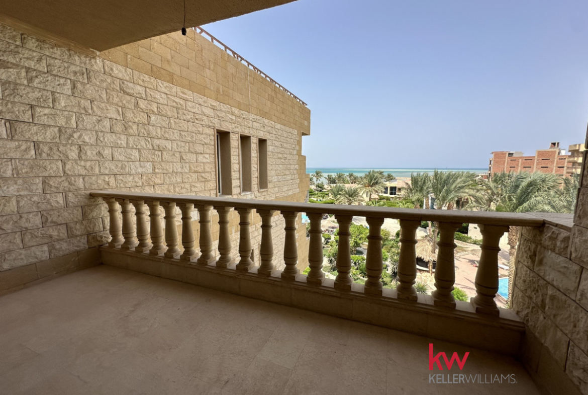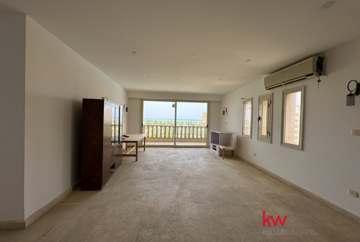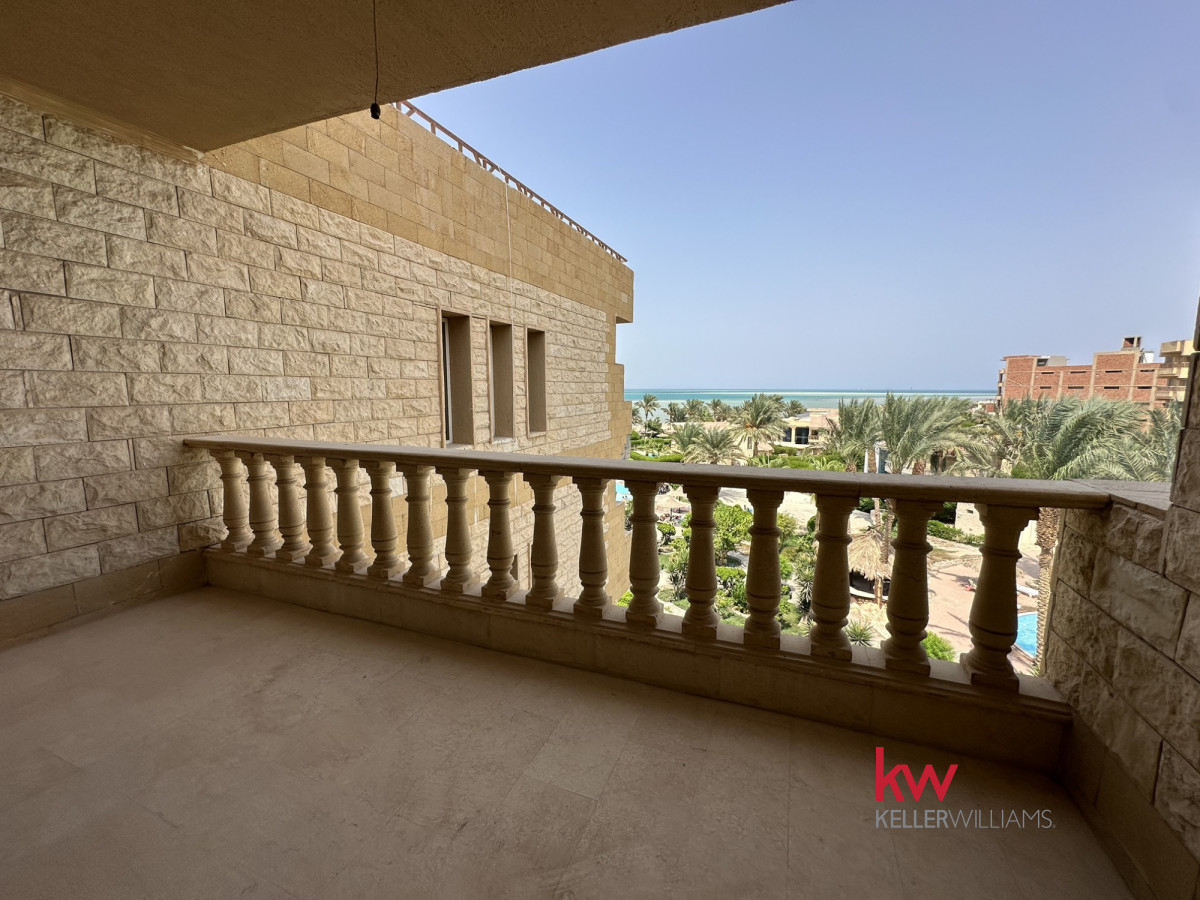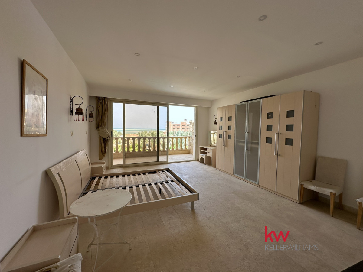 Ten przestronny apartament z zapierającym dech w piersiach panoramicznym widokiem na morze znajduje się na czwartym piętrze kompleksu mieszkalnego z prywatną plażą w północnej części Hurghady.
