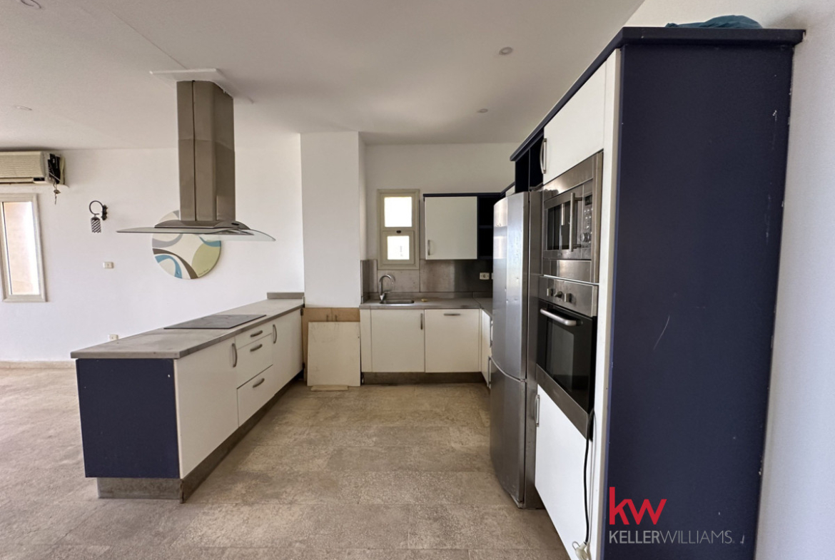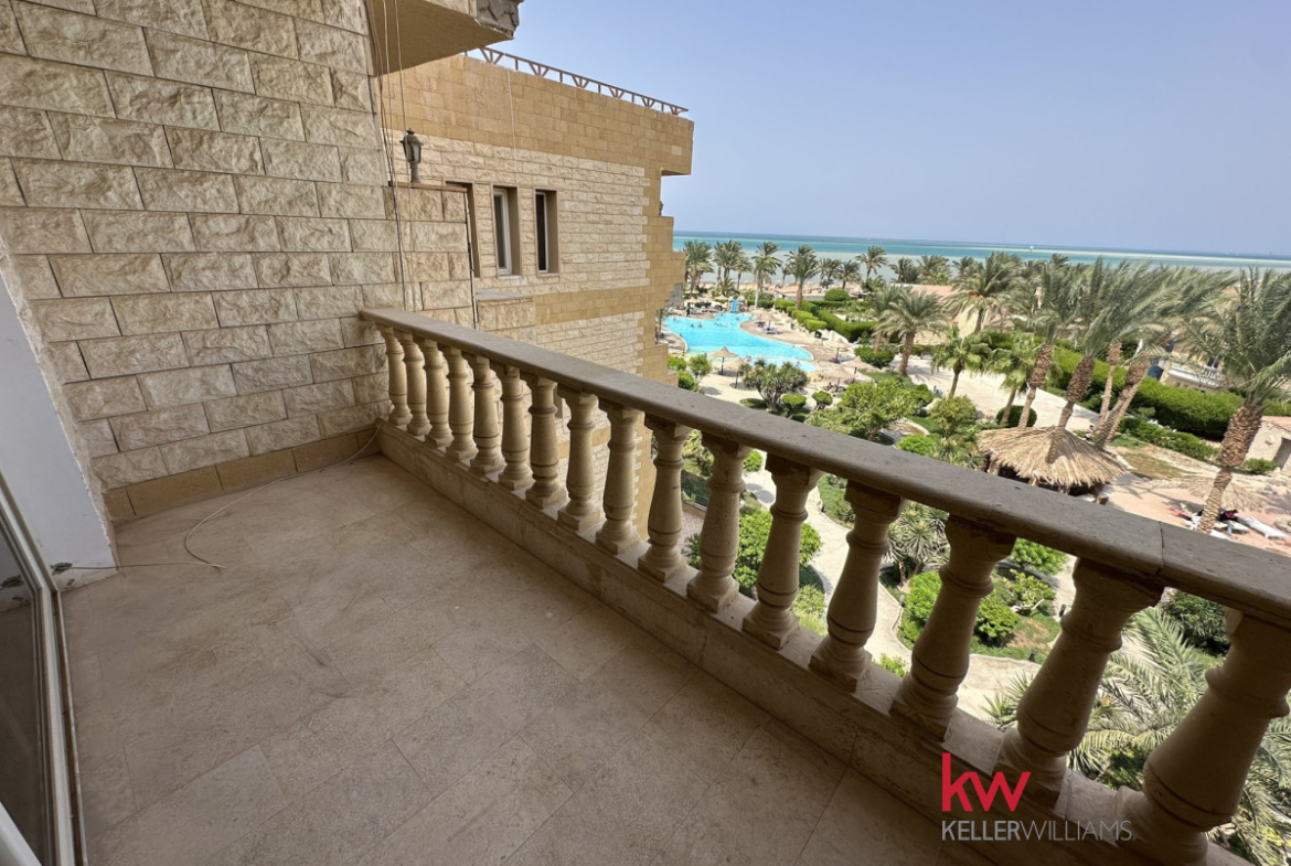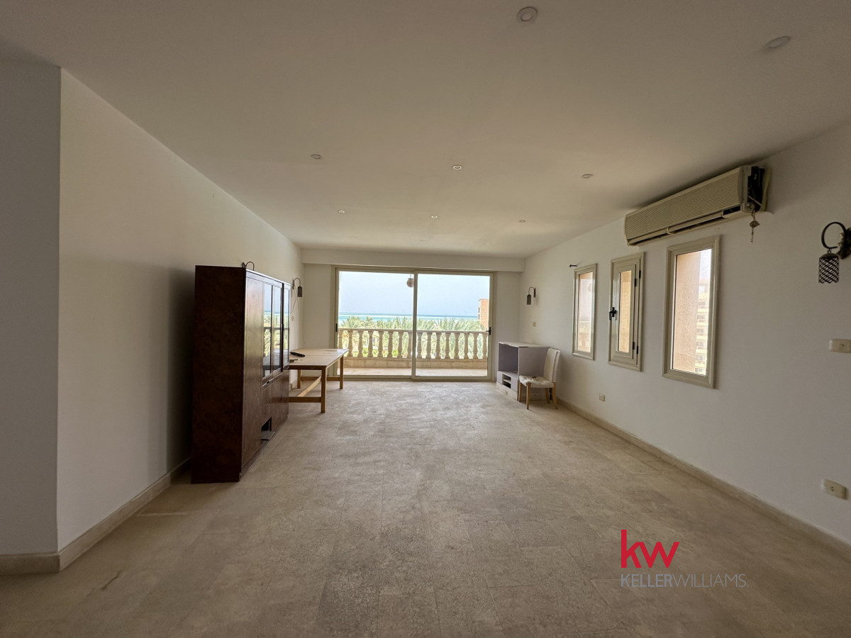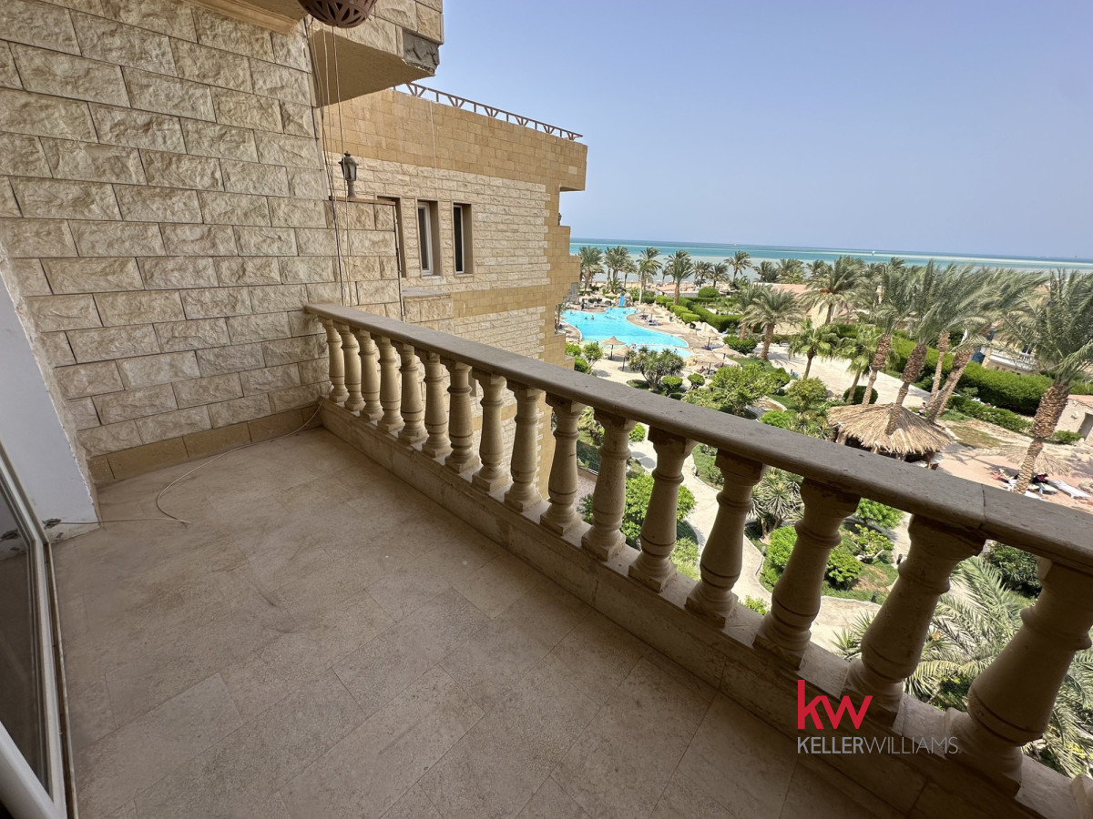 Ten przestronny apartament z zapierającym dech w piersiach panoramicznym widokiem na morze znajduje się na czwartym piętrze kompleksu mieszkalnego z prywatną plażą w północnej części Hurghady.