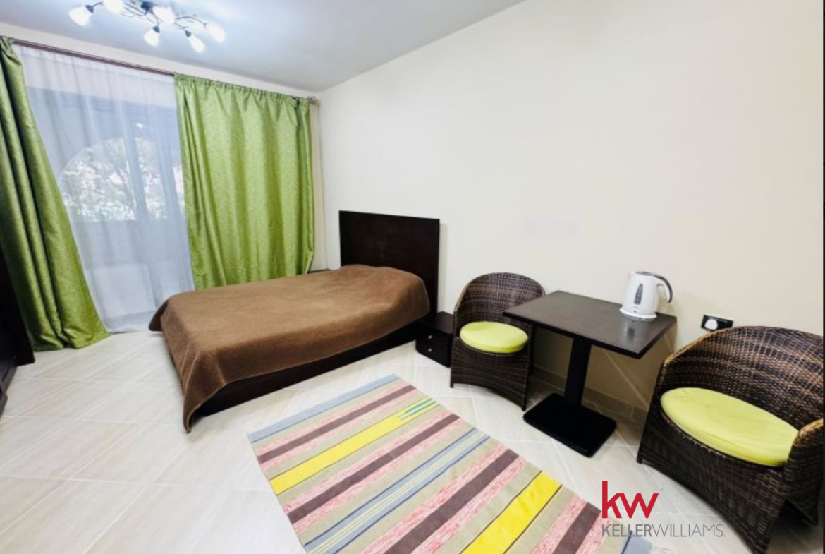 Kawalerka o powierzchni 48 metrów kwadratowych znajduje się na parterze i posiada duży taras. Jest w pełni umeblowana i wyposażona we wszystkie niezbędne sprzęty AGD, gotowa do komfortowego zamieszkania. W cenie jest również klimatyzacja.