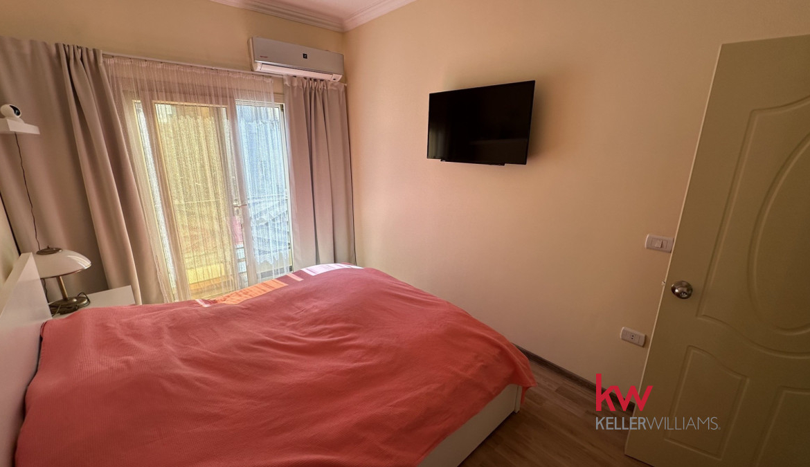 Dzięki dużym oknom w mieszkaniu zawsze jest dużo naturalnego światła. Mieszkanie jest w pełni umeblowane i wyposażone w sprzęt AGD, dwa klimatyzatory oraz Smart TV. Zamontowane są liczniki wody i prądu.