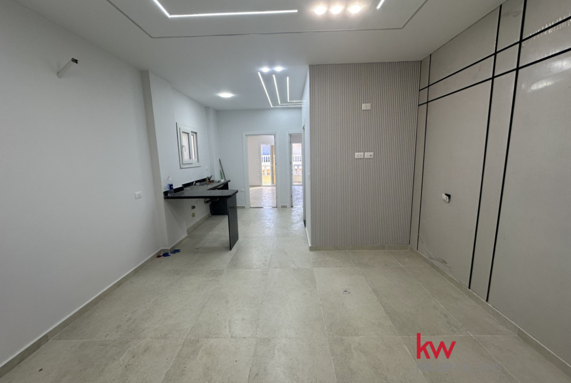 Ten przestronny trzypokojowy apartament z dwiema sypialniami znajduje się w nowej europejskiej dzielnicy Intercontinental, tuż przy promenadzie Mamsha i popularnej plaży nr 9.