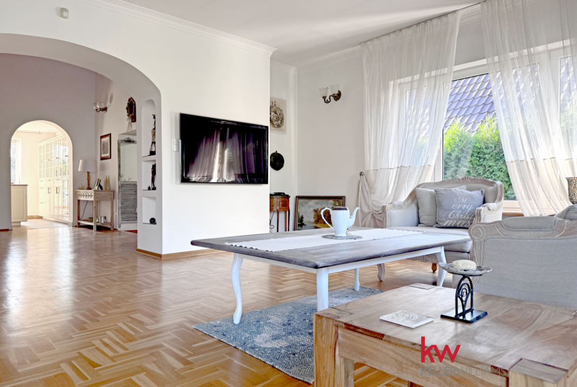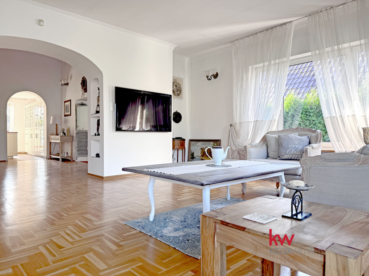 • przestronny salon z widokiem na ogród