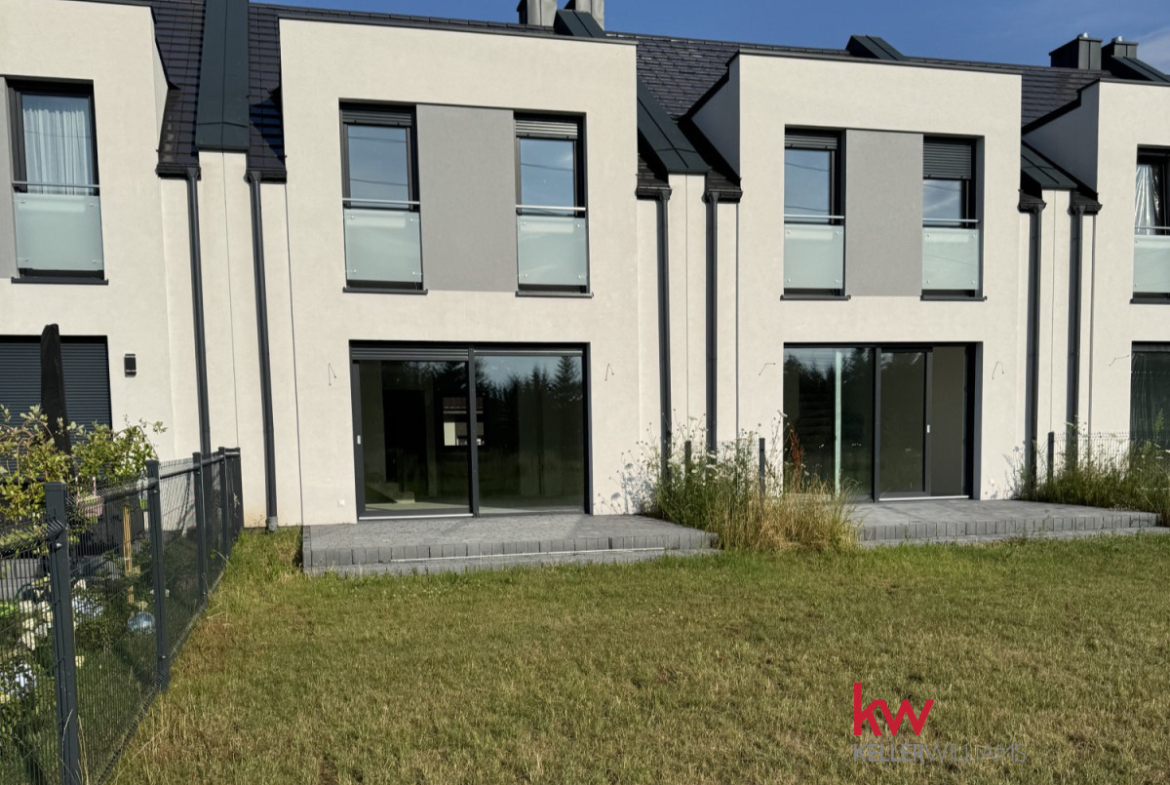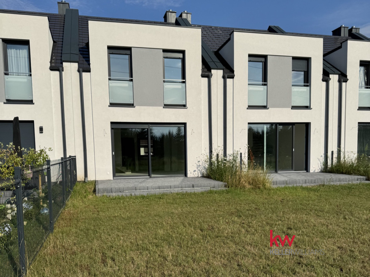 Nowoczesny Dom w Zabudowie Szeregowej z wyjątkowym atutem – ścieżką poprowadzoną wzdłuż ogrodzenia, która prowadzi bezpośrednio do własnych ogrodów. To detal, który robi różnicę.