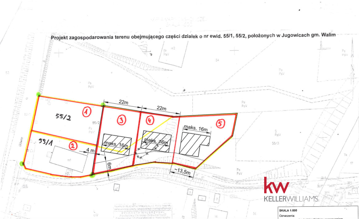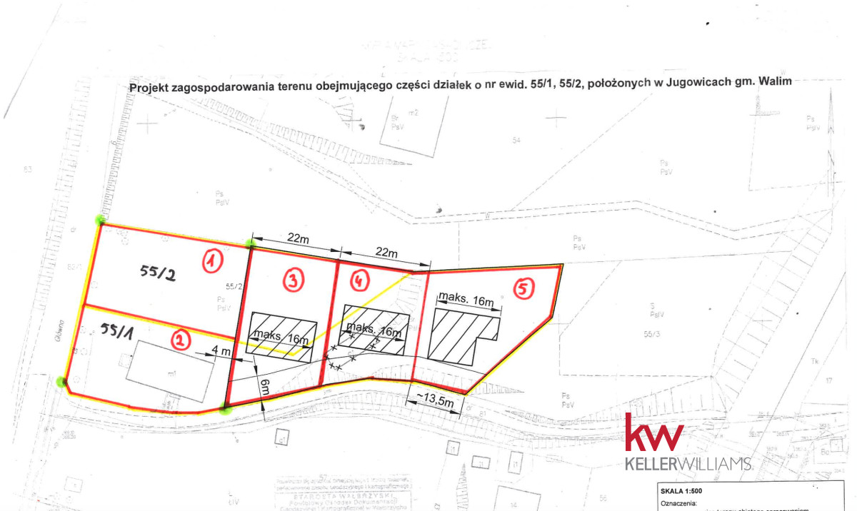 -Powierzchnia działki: 3817m2, możliwość podziału na 5 działek (pozytywna opinia w sprawie projektu podziału),