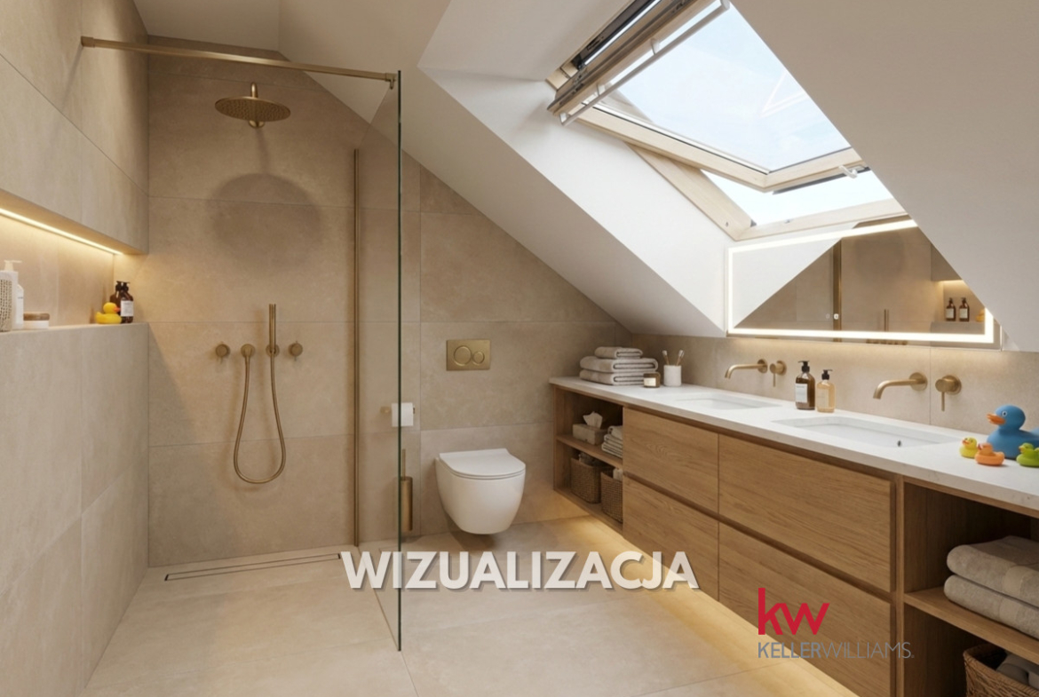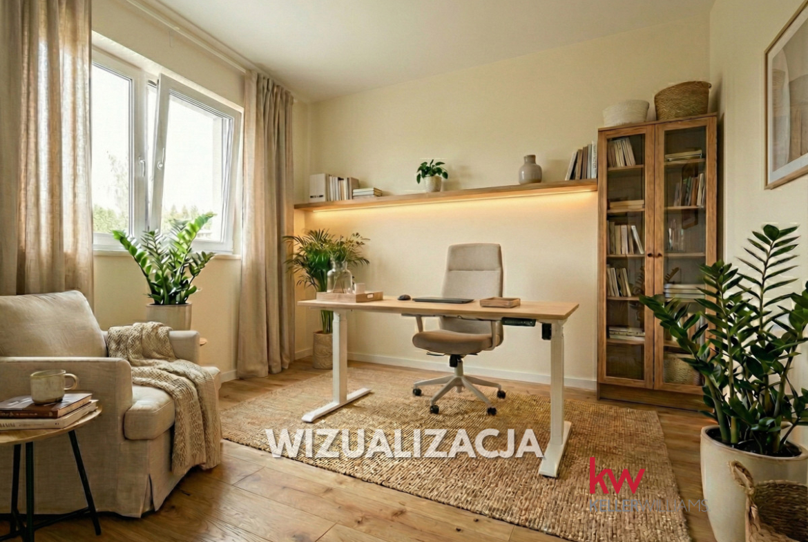 – Duża strefa dzienna ok. 50 m² + gabinet/pokój gościnny na parterze – wygodna praca z domu.