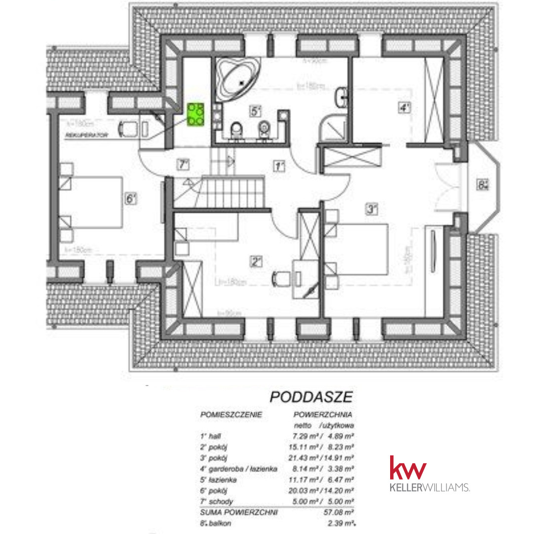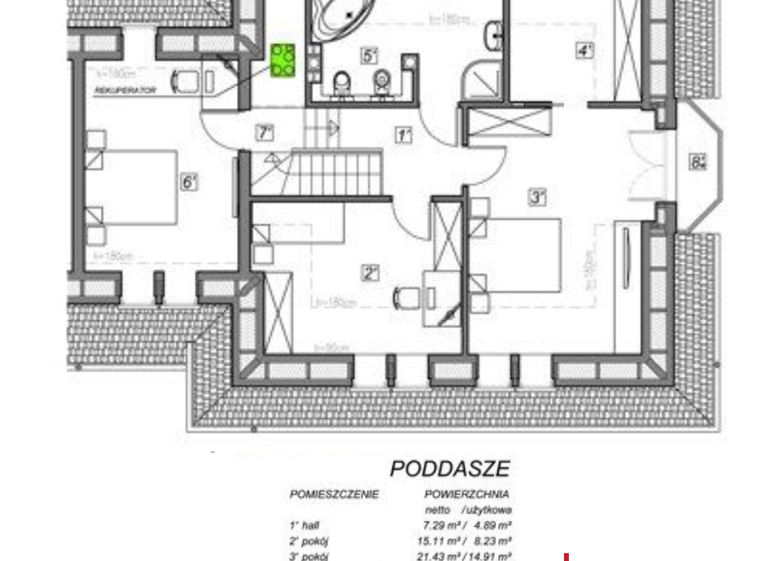 – Garaż 17,32 m² w bryle budynku.