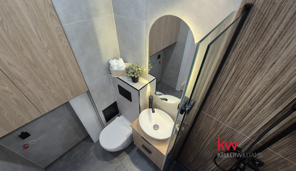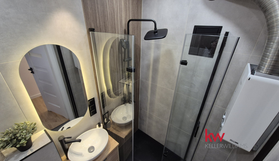 Remont został przeprowadzony z myślą o trwałości. Wodoodporne panele o klasie ścieralności AC5 przetrwają setki walizek, a sprzęty AGD marki Beko i armatura Rea to sprawdzony balans między designem a niezawodnością.