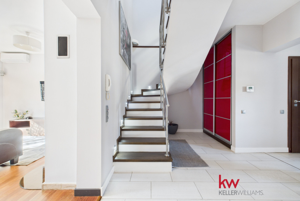 – Klimatyzacja: kanałowa na piętrze + jednostka ścienna na parterze