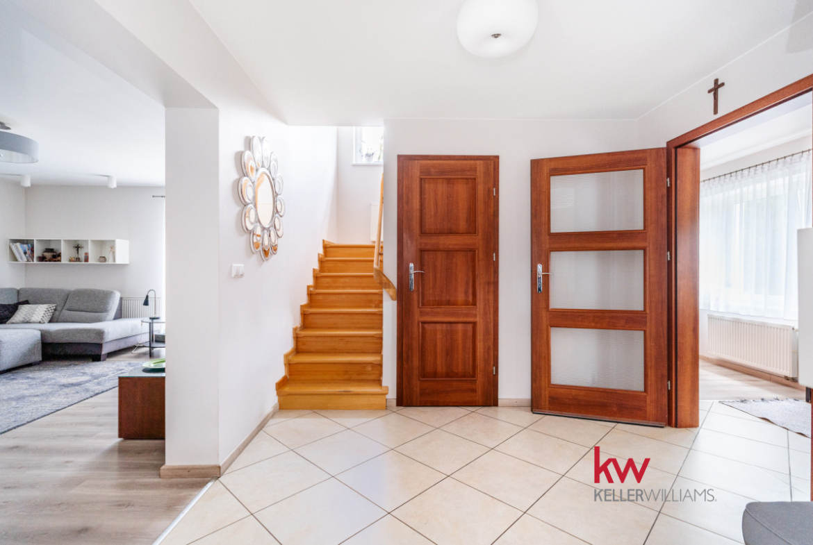 Pięć komfortowych pokoi – idealne dla większej rodziny, z możliwością dowolnej aranżacji: strefa dzienna, sypialnie, gabinet czy pokój dla gości.