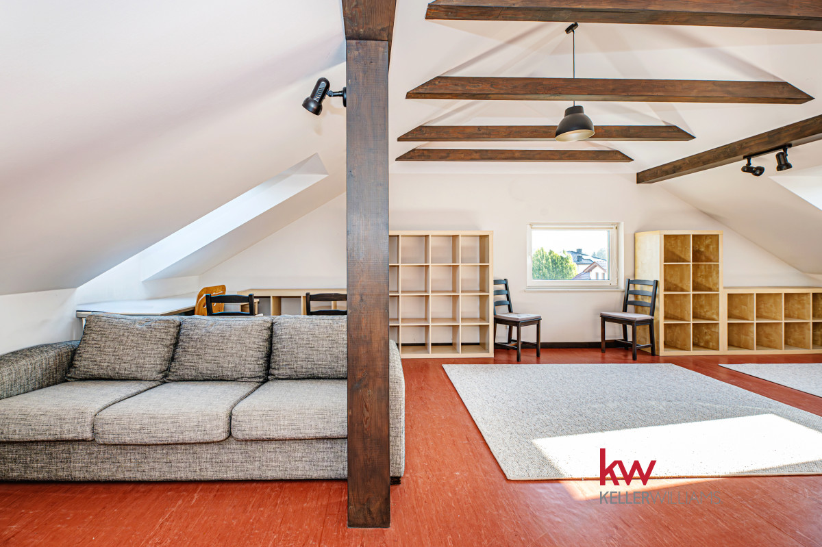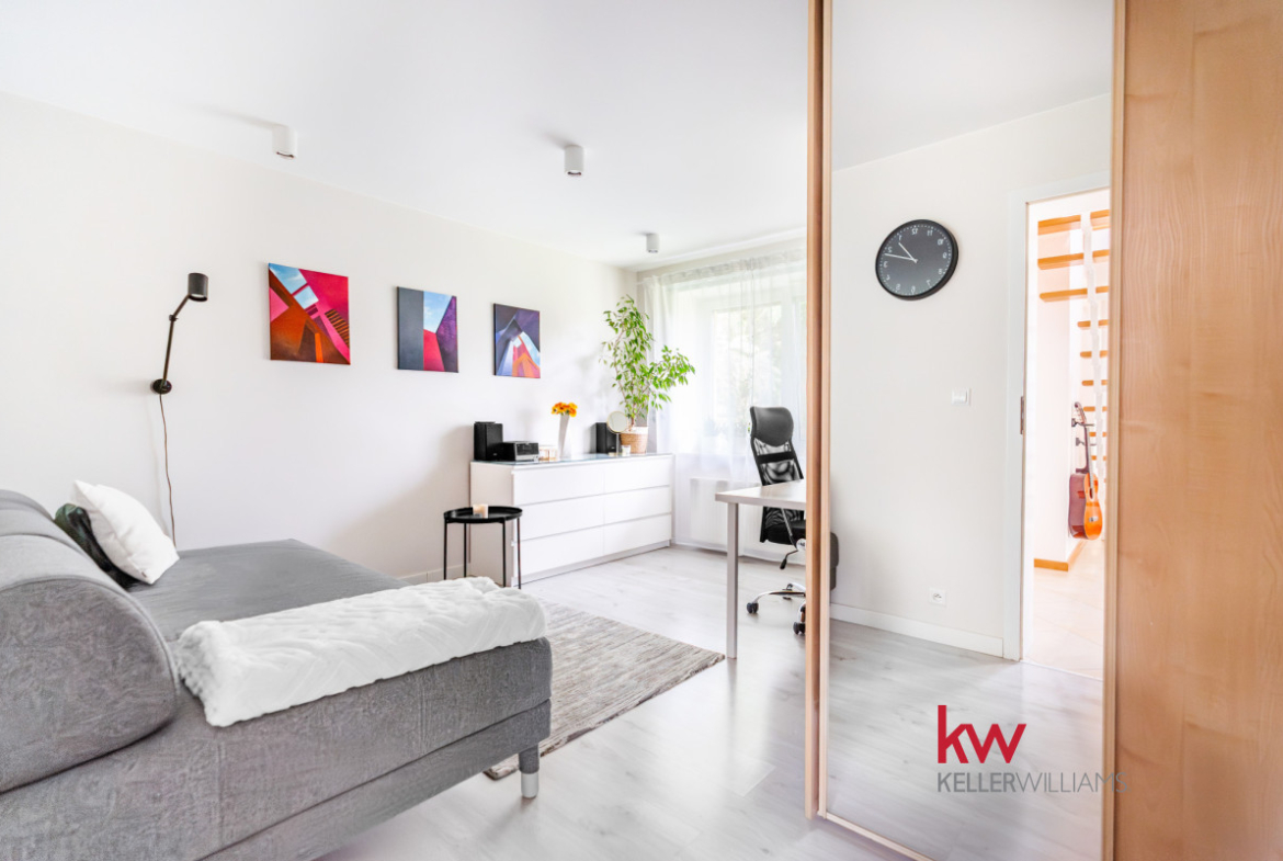 Dodatkowo nie wpisane w metraż, świetnie – zaadaptowane poddasze, idealne na pracownię to mocny atut! Dodaje nieruchomości charakteru, funkcjonalności i może zainteresować osoby pracujące zdalnie, artystów, architektów czy przedsiębiorców.