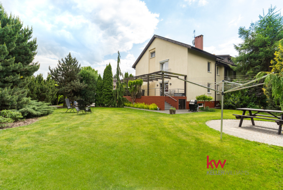 Duża działka zapewnia miejsce na zabawę i rekreację. Ogród ma także miejsce do zaadoptowania pod basen.