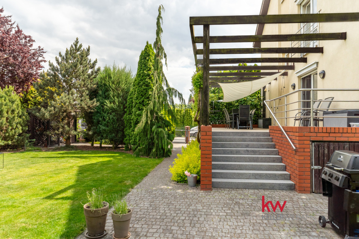 Na sprzedaż duży i funkcjonalny rodzinny dom w zabudowie bliźniaczej z garażem i dużym ogrodem,  położony w Kórniku, zaledwie 15 minut drogi od Poznania.