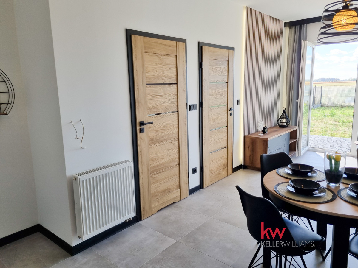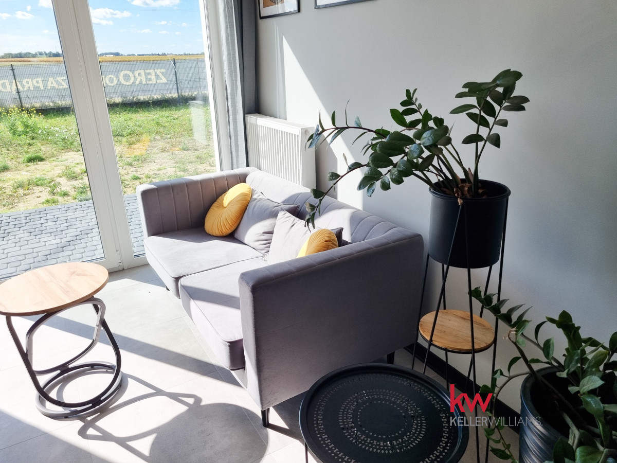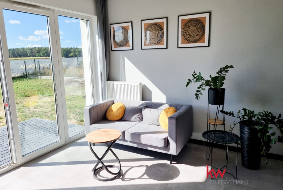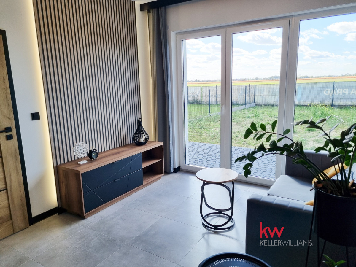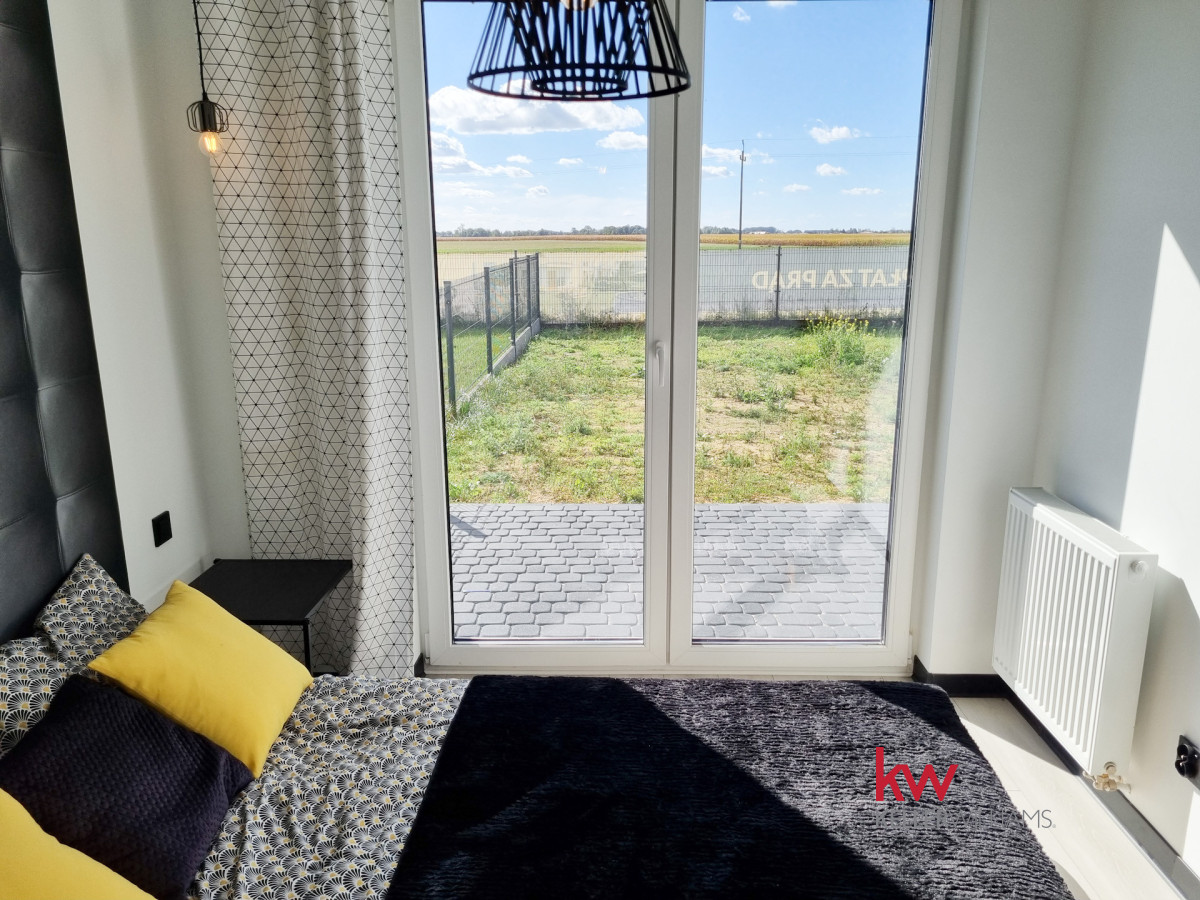 Z pokoju dziennego oraz ze sypialni jest wyjście na taras i duży ogród ok. 170 m2.