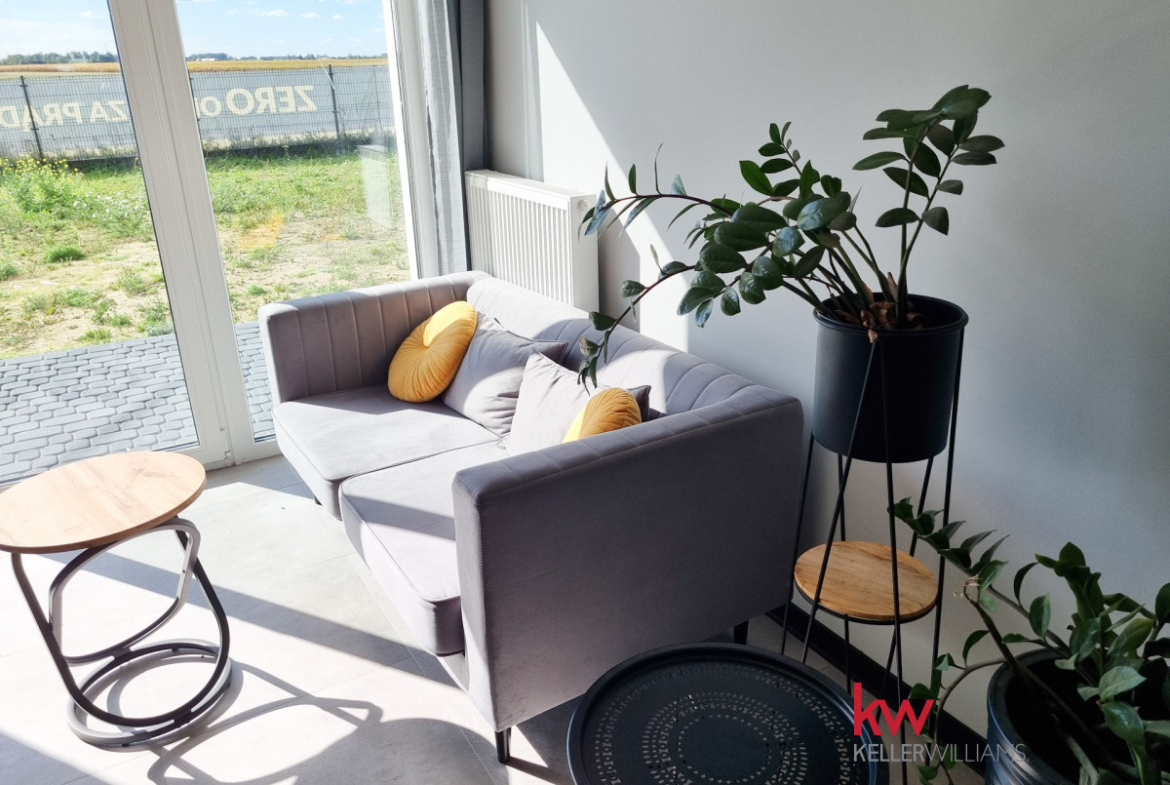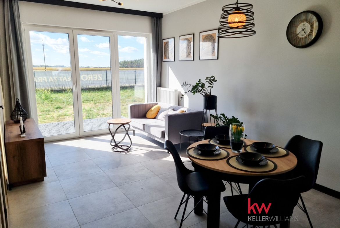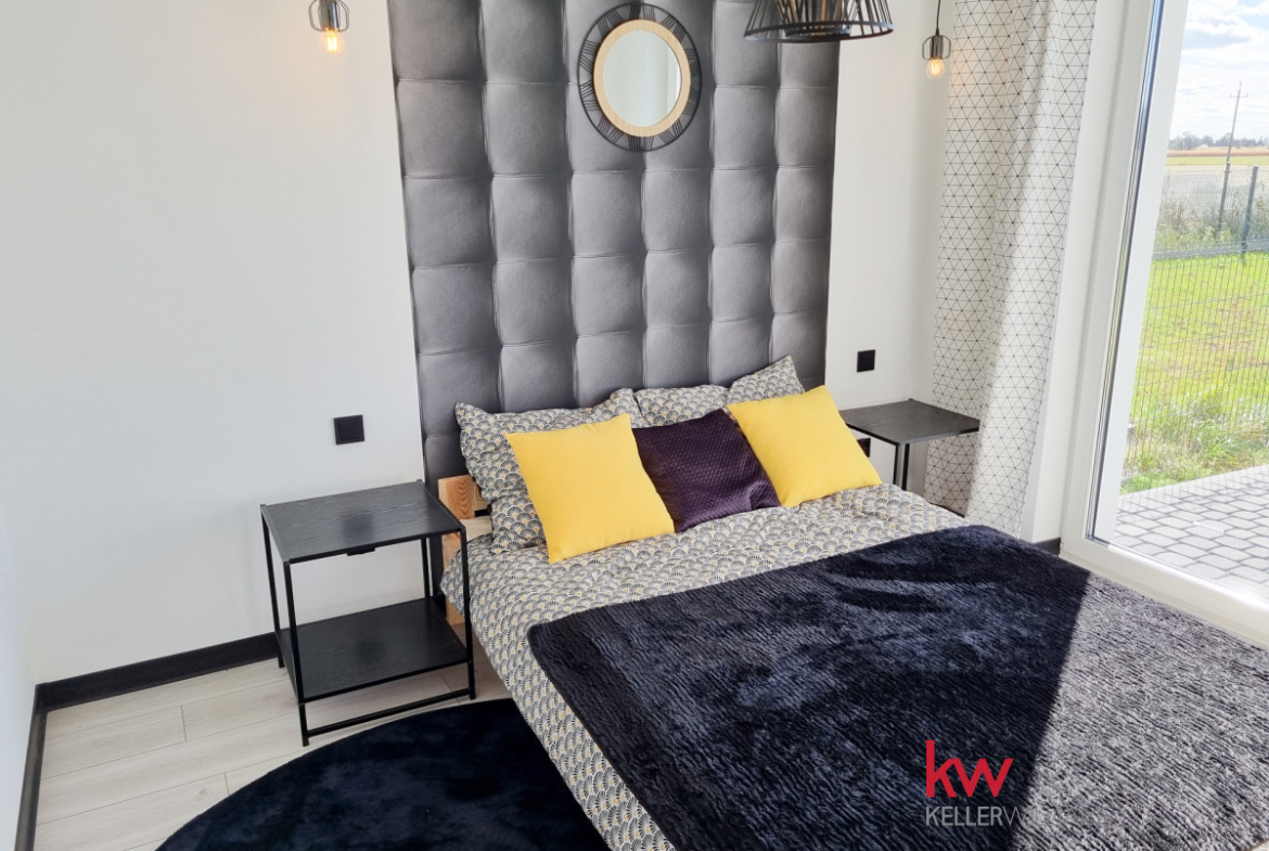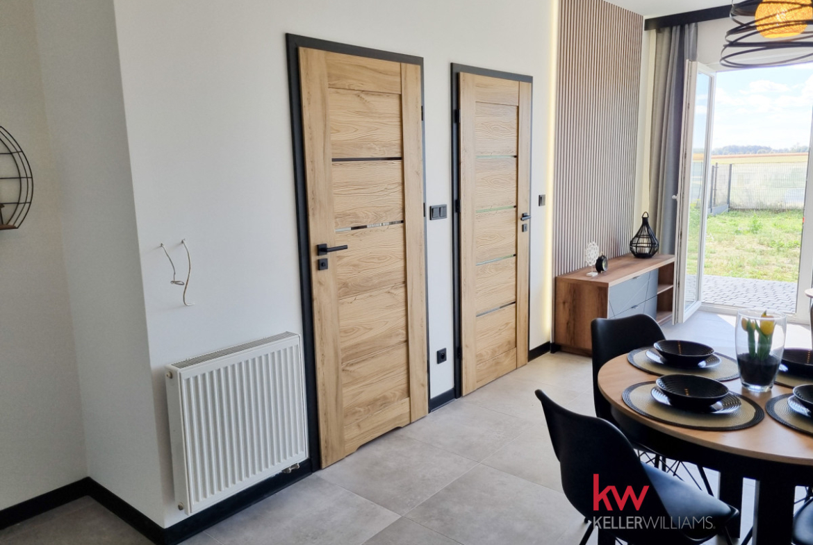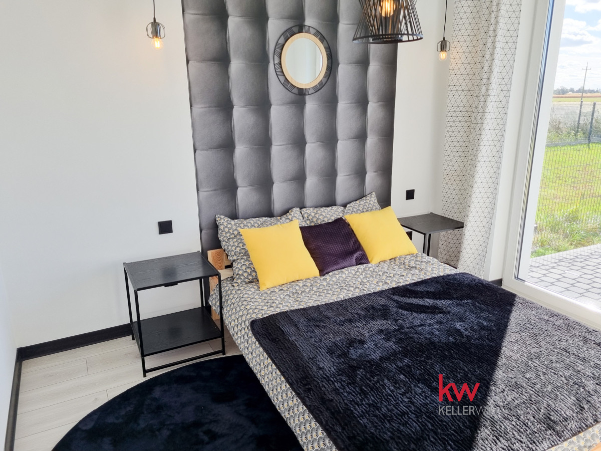 Z pokoju dziennego oraz ze sypialni jest wyjście na taras i duży ogród ok. 170 m2.