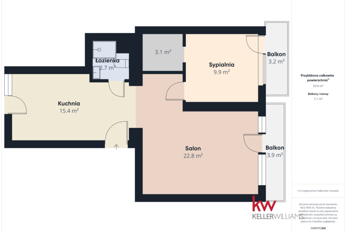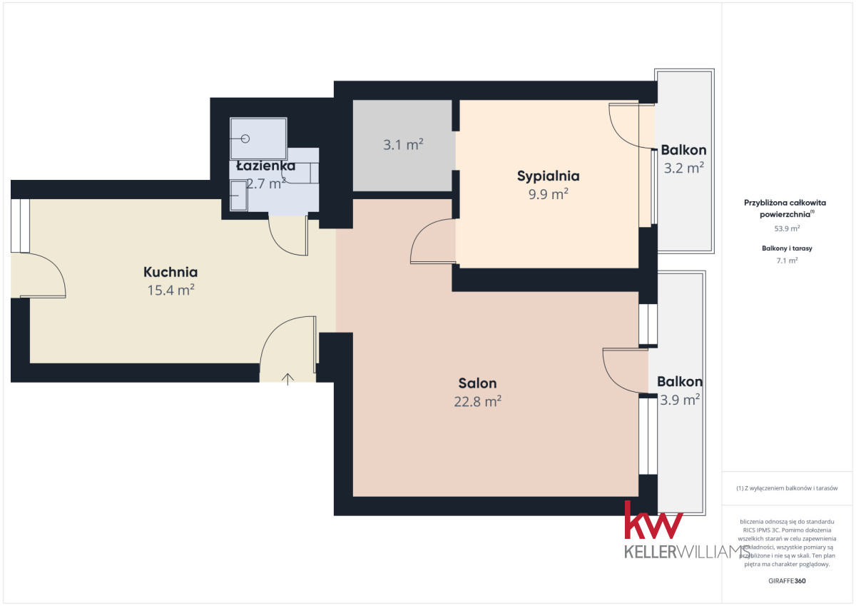 - Garderoba / biuro (3,1 m²) – wygodna przestrzeń do pracy lub przechowywania,