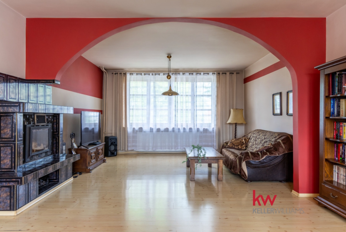 Powierzchnia mieszkalna wynosi 202 m², a na parterze znajduje się 93,97 m² lokalu usługowego – idealnego pod biuro, gabinet, sklep, pub czy restaurację lub do przekształcenia na kolejną przestrzeń mieszkalną.