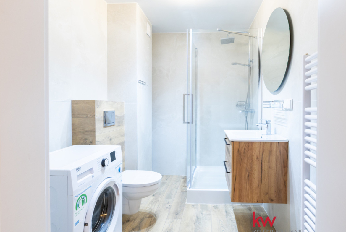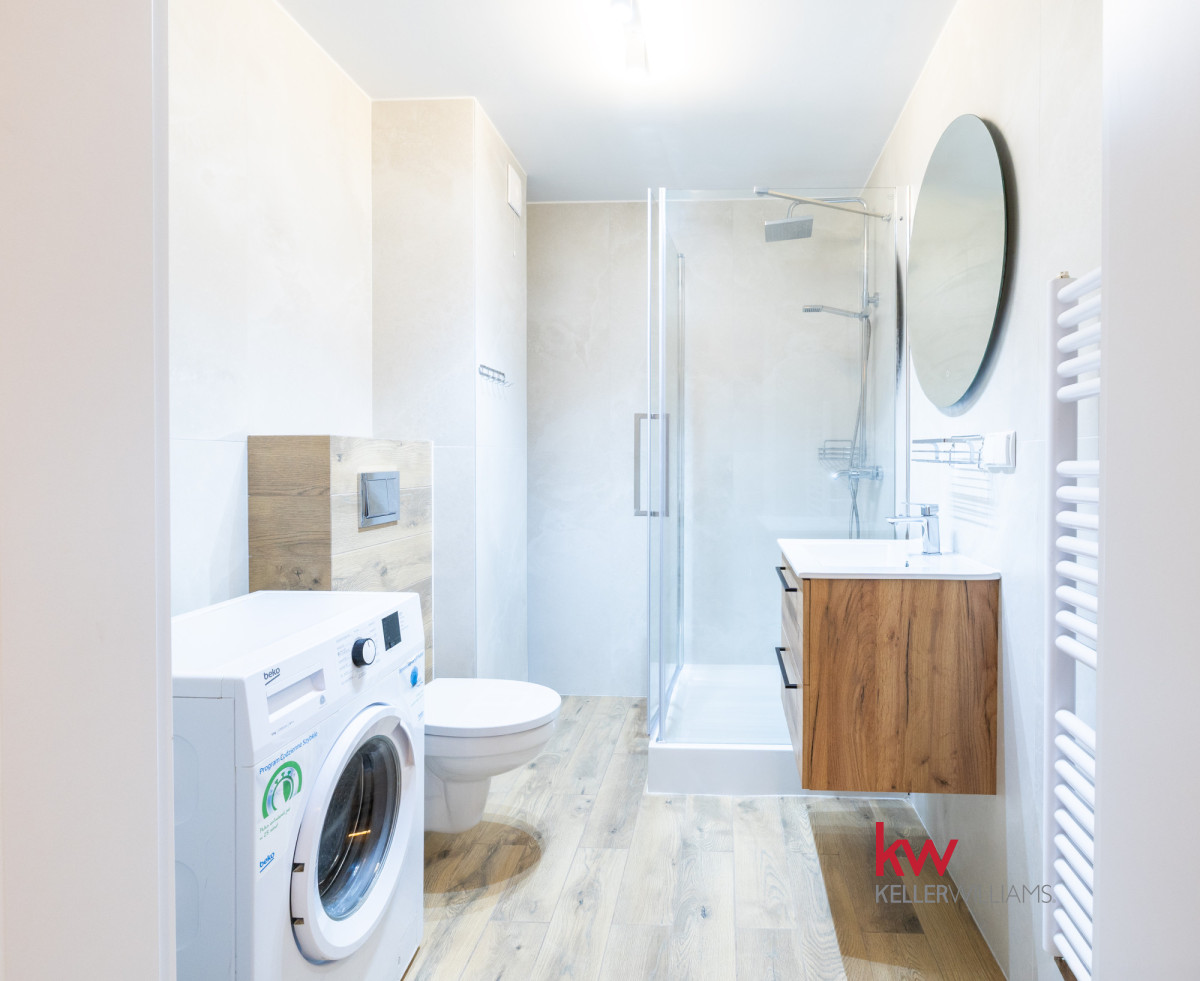 Łazienka jest  zaprojektowana nowocześnie i funkcjonalnie a gratis dorzucamy pralkę!