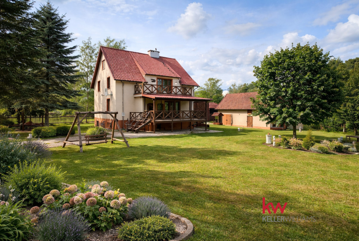 Nieruchomość położona jest na rozległej działce o powierzchni 3 800 mkw (dom, budynki gospodarcze niewielki staw), oraz dodatkowo 2ha ziemi tuż przy domu 4 i 5 klasy, oferując przy tym niesamowite możliwości zagospodarowania.