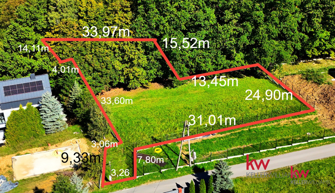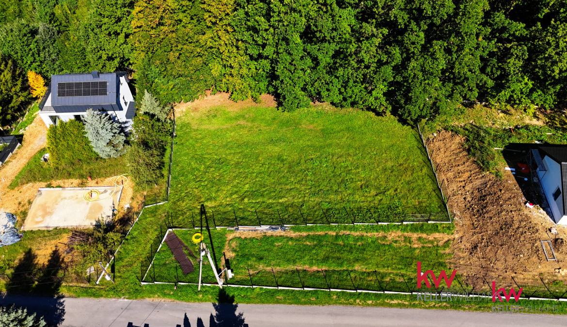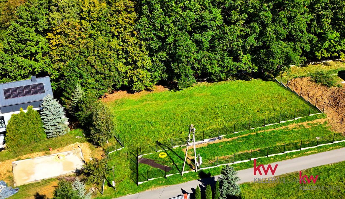 Działka jest częściowo ogrodzona (płot z siatki) co ułatwia organizacje przestrzeni i pozwala szybko rozpocząć pracę nad własnym projektem.