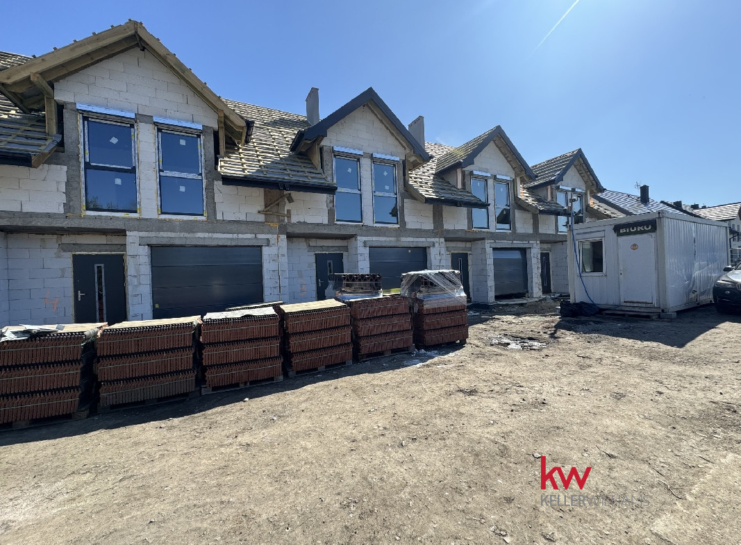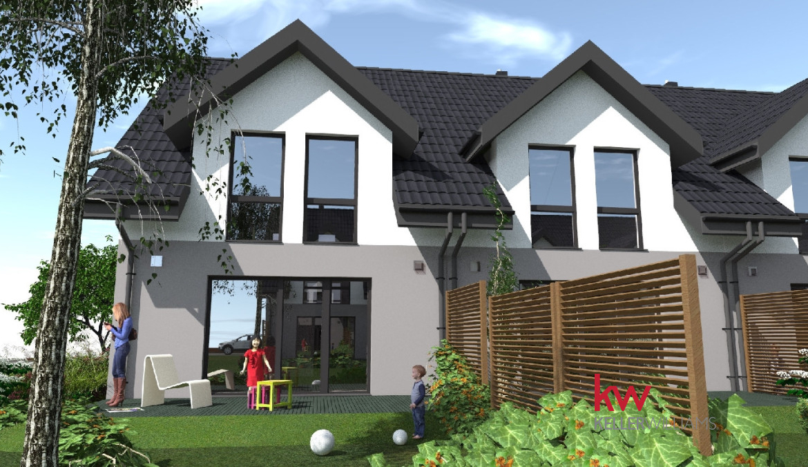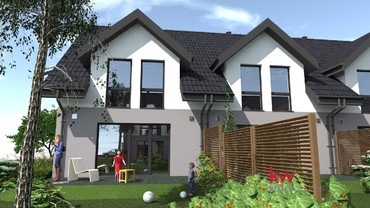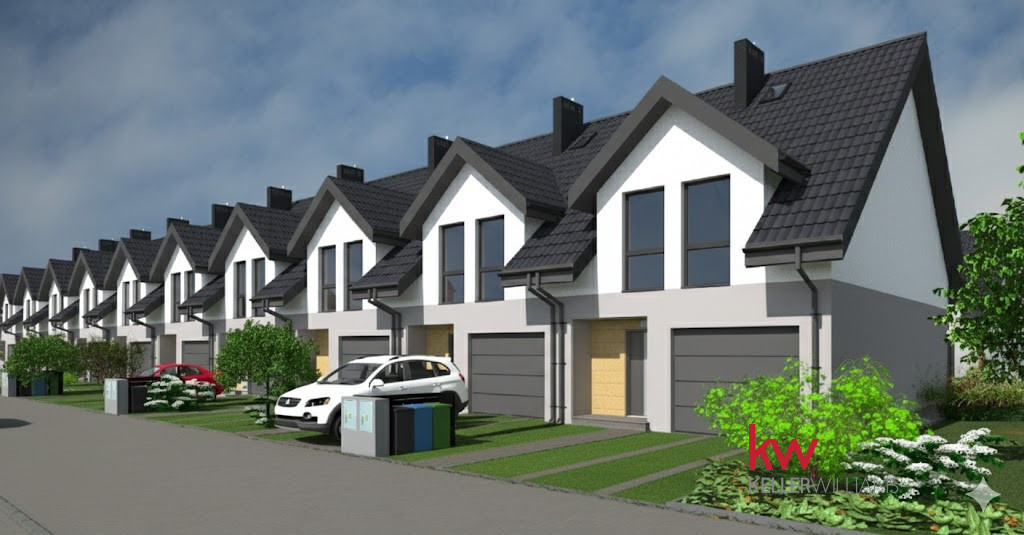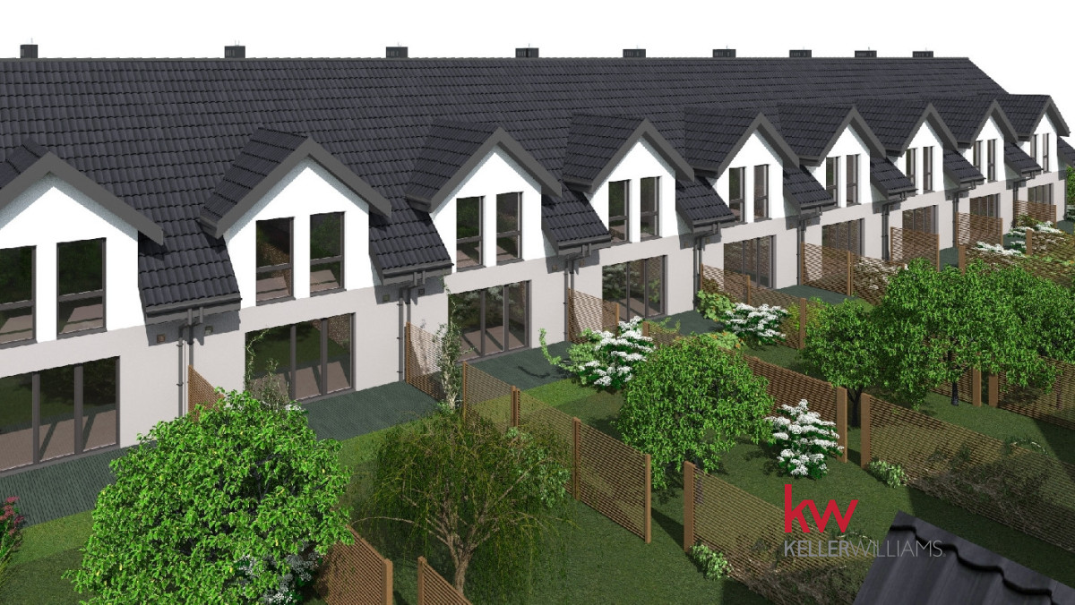 Nowy segment w zabudowie szeregowej w Mędłowie (gm. Żórawina). Pow. użytkowa ok. 118-119 m², garaż w bryle, własny ogródek, funkcjonalny układ pod rodzinę: salon z kuchnią na parterze i 4 sypialnie na piętrze. Spokojna okolica z zielenią, szybki dojazd do Wrocławia.
