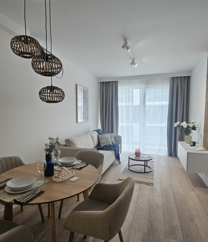 Zaledwie 200 metrów od szerokiej, piaszczystej plaży powstają eleganckie apartamenty o powierzchniach od 29,58 m² do 48 m². Każdy z nich został zaprojektowany z myślą o maksymalnym komforcie – funkcjonalny układ obejmuje przestronny salon z aneksem kuchennym, wygodną sypialnię, nowoczesną łazienkę oraz balkon lub własny ogródek, idealny do relaksu na świeżym powietrzu.