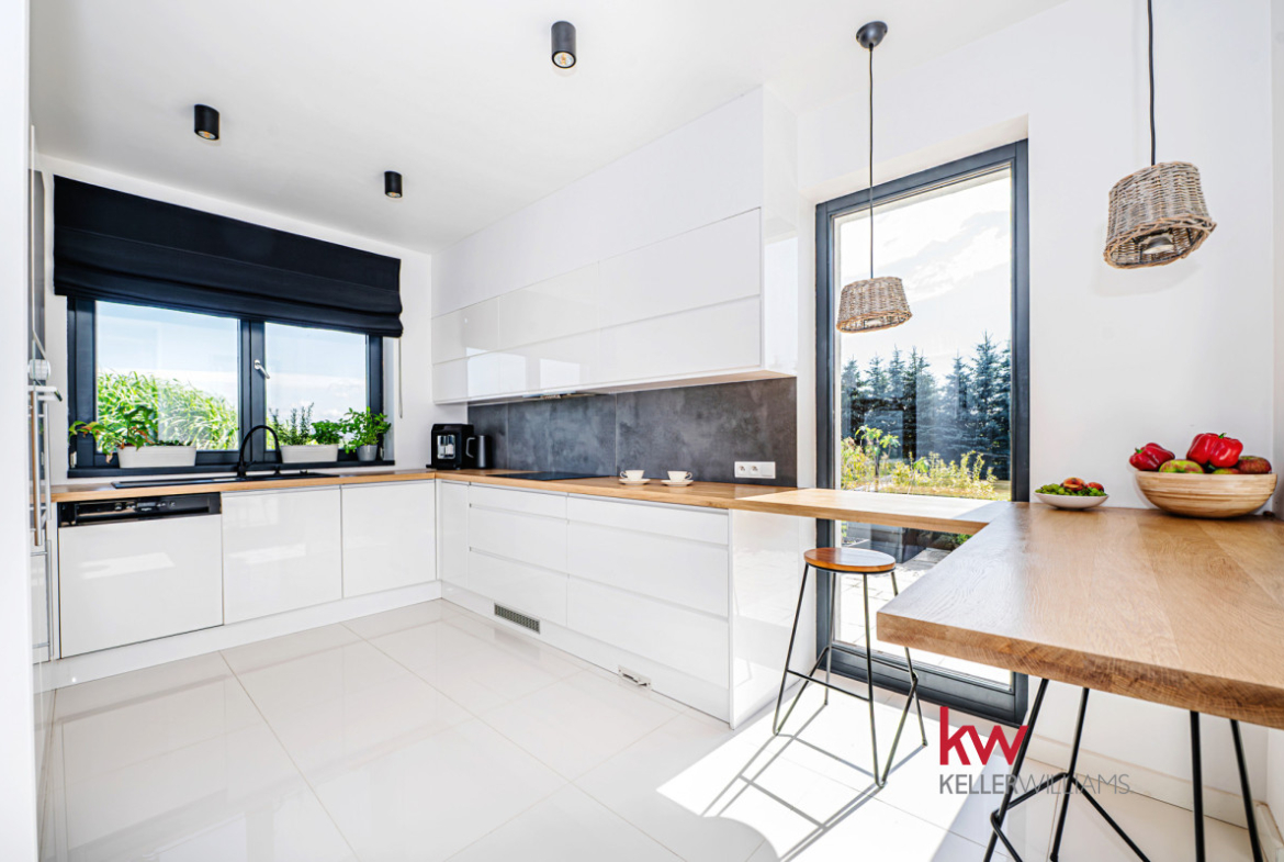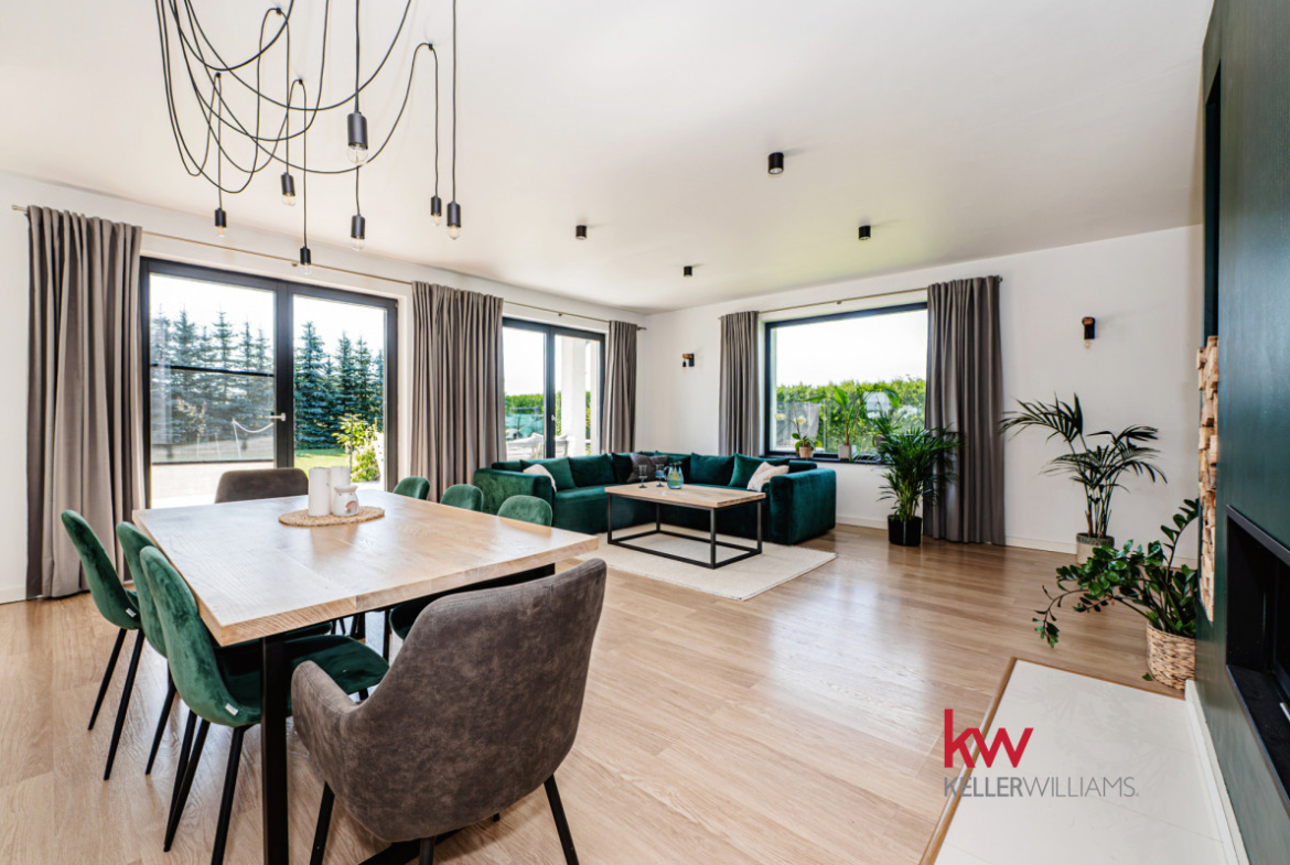 Dom o powierzchni 300 m², wykonany z najwyższej jakości materiałów, urzeka przestronnością, jasnymi wnętrzami i klimatem sprzyjającym zarówno codziennemu życiu, jak i chwili relaksu. Regularnie modernizowany i odświeżany, pozostaje gotowy do wprowadzenia bez dodatkowych nakładów.