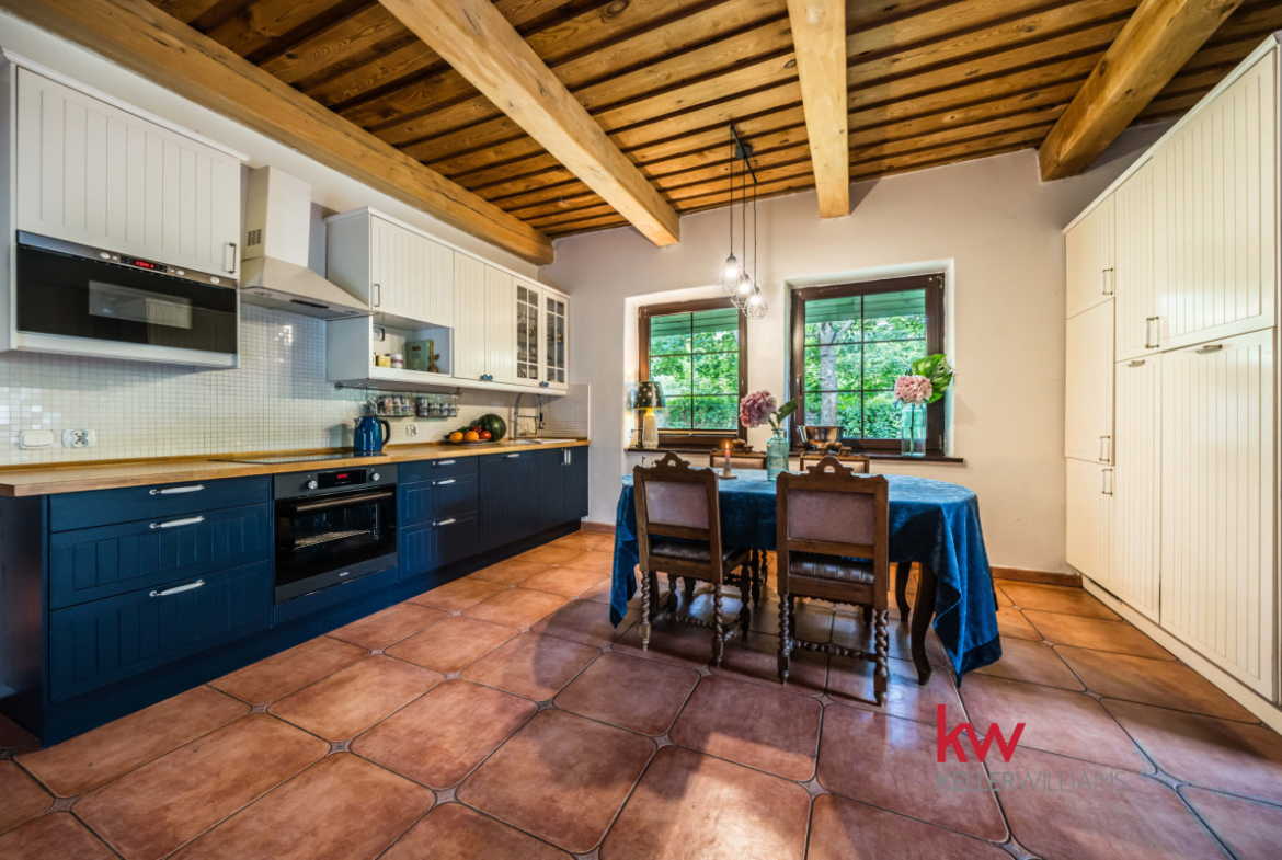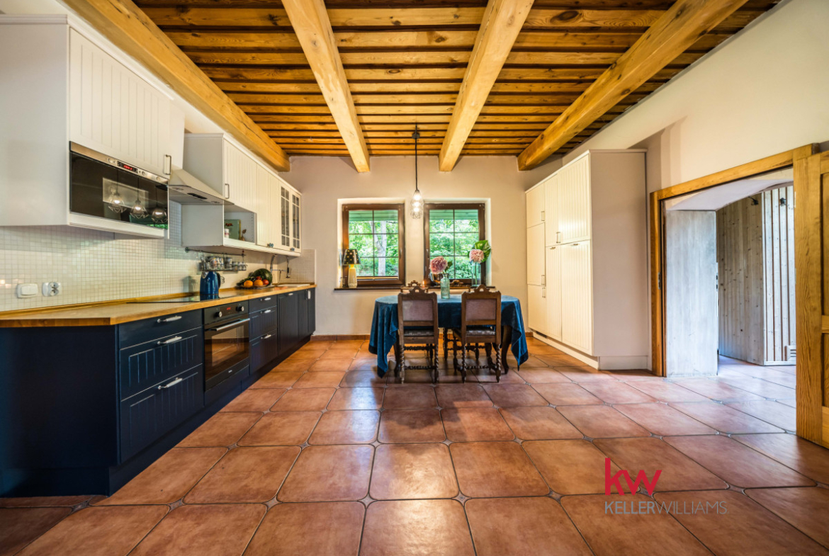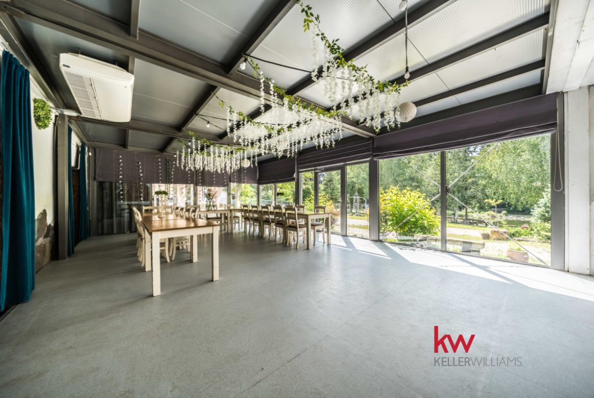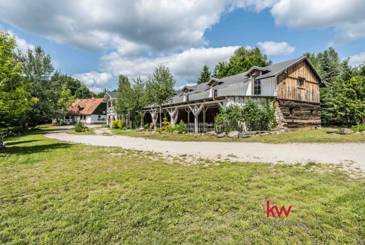 Posiadłość z ogromnym potencjałem – 930 m² zabudowy, 6861 m² gruntu, las, strumień, staw, działalność usługowa.