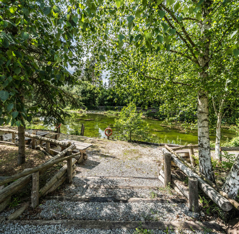 * bezpośredni dostęp do rzeki i taras nad stawem