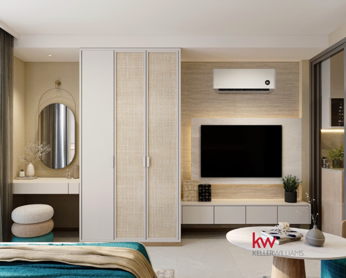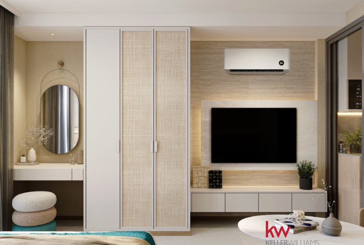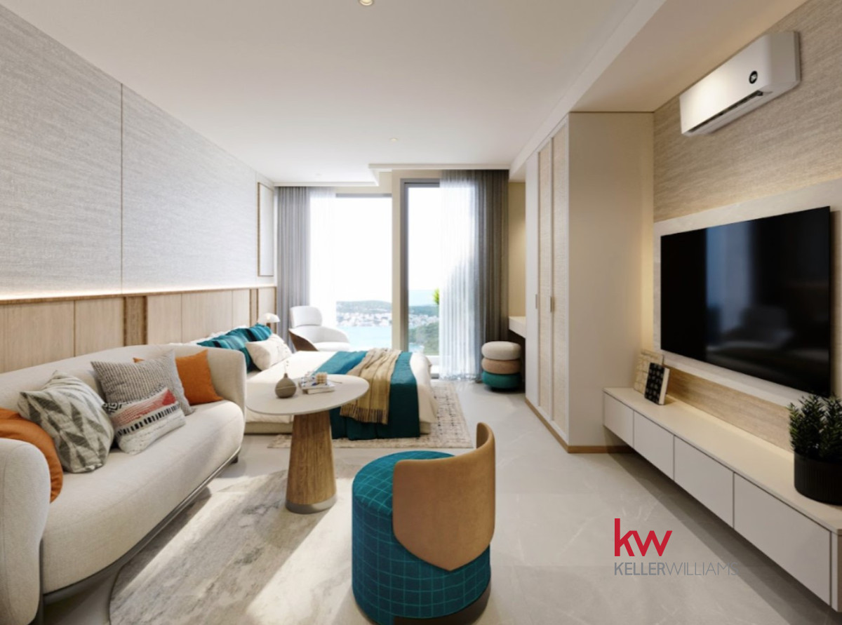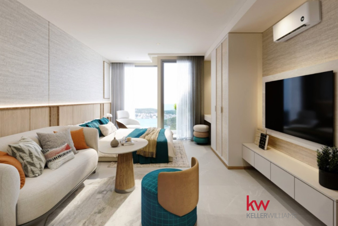 Cena obejmuje: wykończenie, hydraulikę, klimatyzację, meble w zabudowie, pakiet mebli, sprzęt AGD i tekstylia.