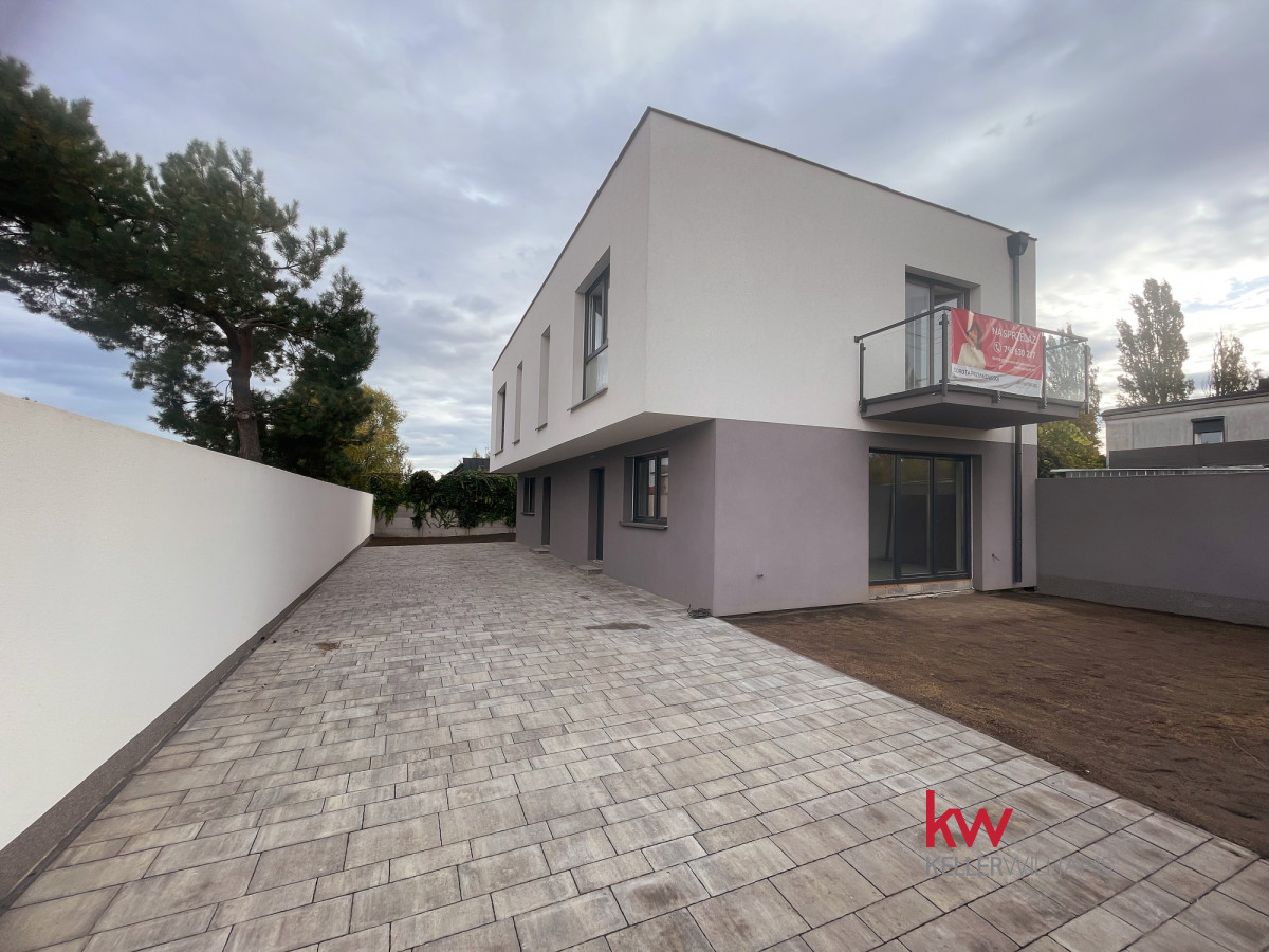 Nowoczesna bryła budynku ładnie wkomponowuje się w otoczenie, spokojnego osiedla domków jednorodzinnych.