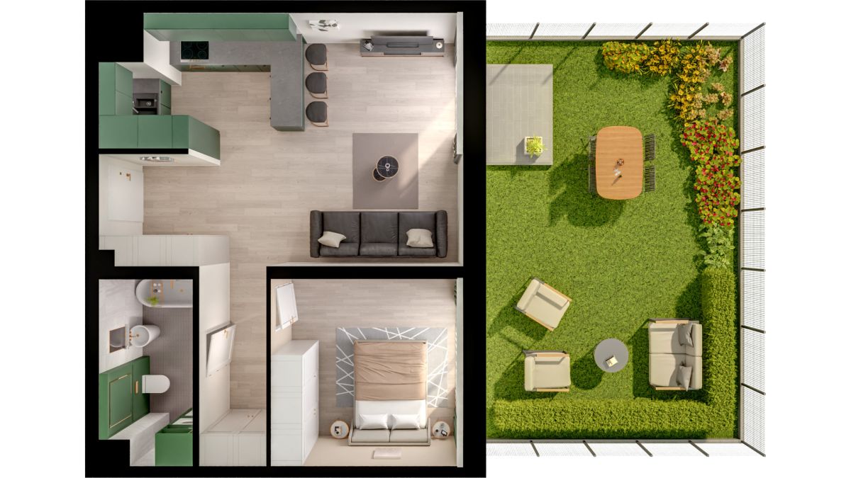 * Prywatna strefa relaksu: Do lokali przynależą balkony, przestronne tarasy lub prywatne ogródki na parterze.