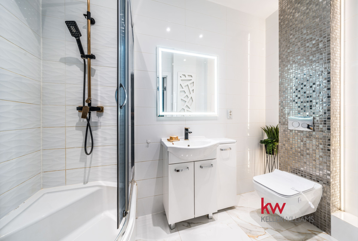 Wysokość pomieszczeń to 2,7 m co daje poczucie większej przestrzeni.