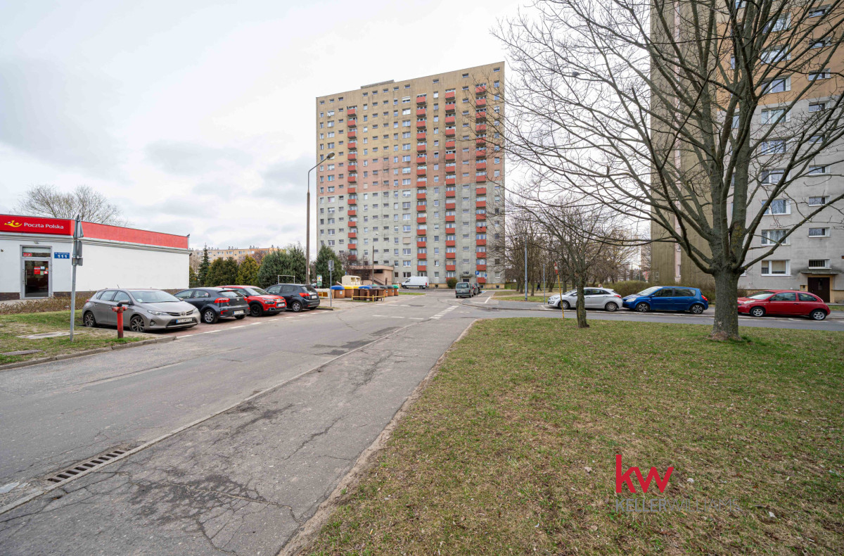 Wieżowiec po modernizacjach – w ostatnich latach wymieniono balkony. Budynek zadbany.